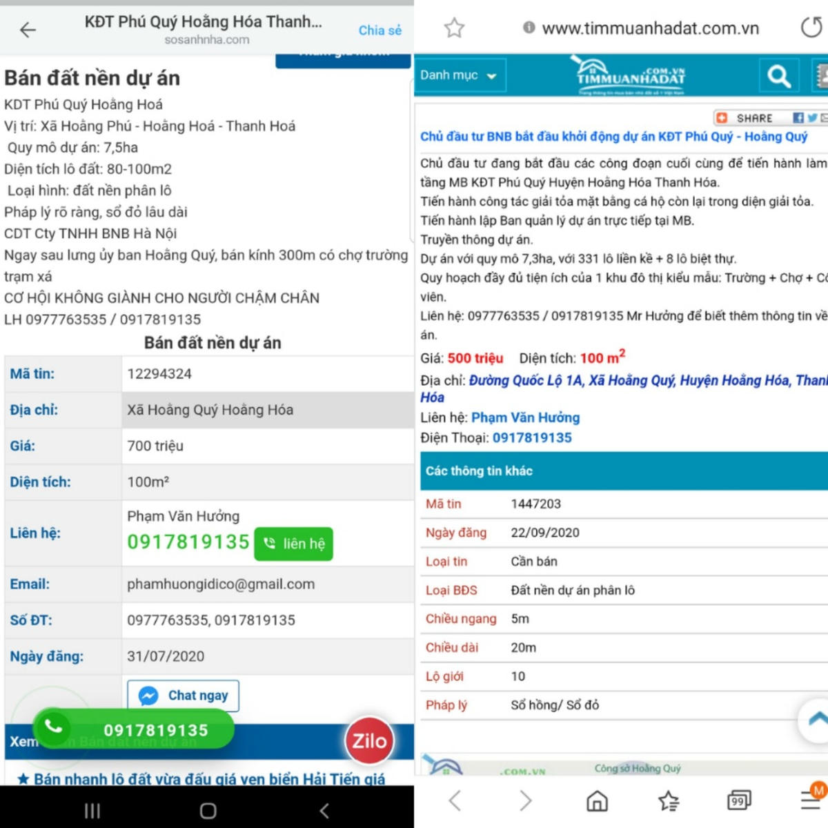 Chỉ cần gõ từ Khóa Dự án Phú Quý Hoằng Hóa, Thanh Hóa trên Google, chưa đầy 1s hàng loạt thông tin mua bán về dự án được chào bán trên các trang khác nhau.