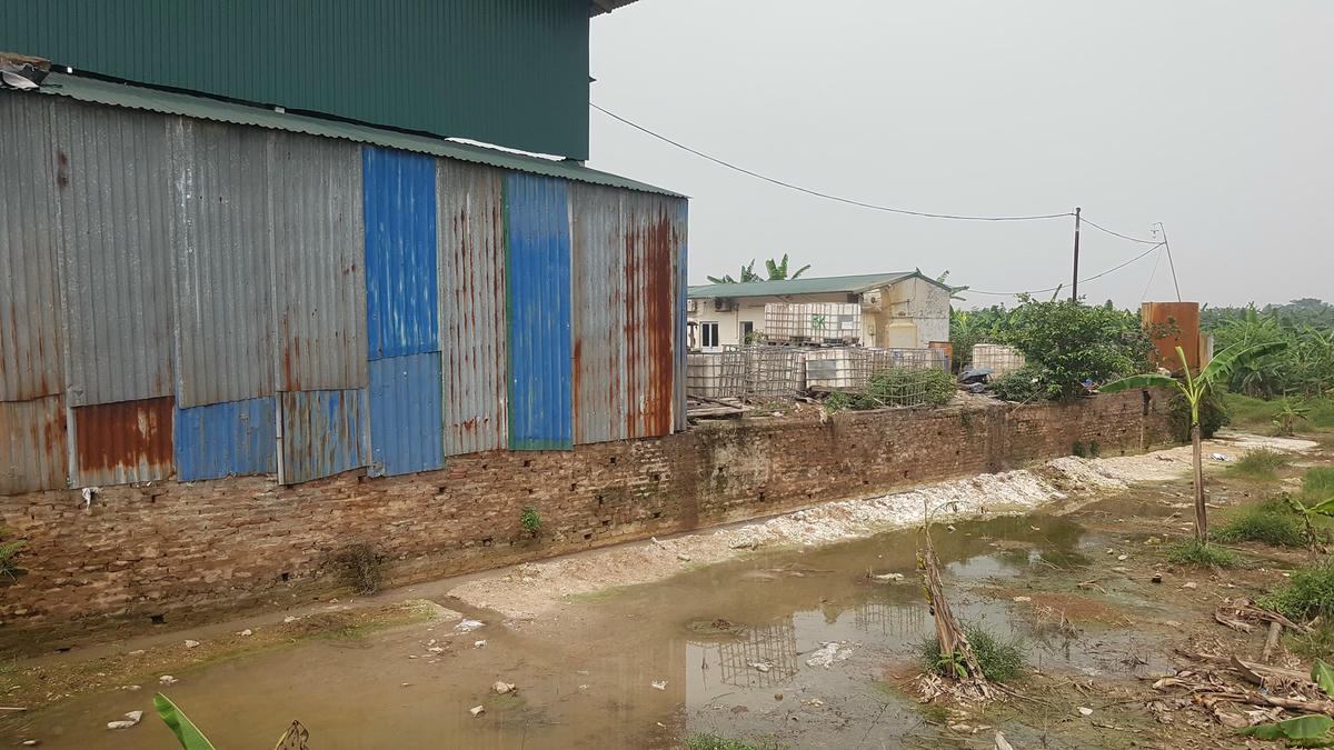 Trong khi phần mặt nền cơ sở sản xuất không hề được thảm bằng bê tông, nên gần như toàn bộ nước thải lẫn hóa chất cứ vậy mà thẩm thấu xuống lòng đất và theo rãnh thoát nước dẫn ra sông Đuống.