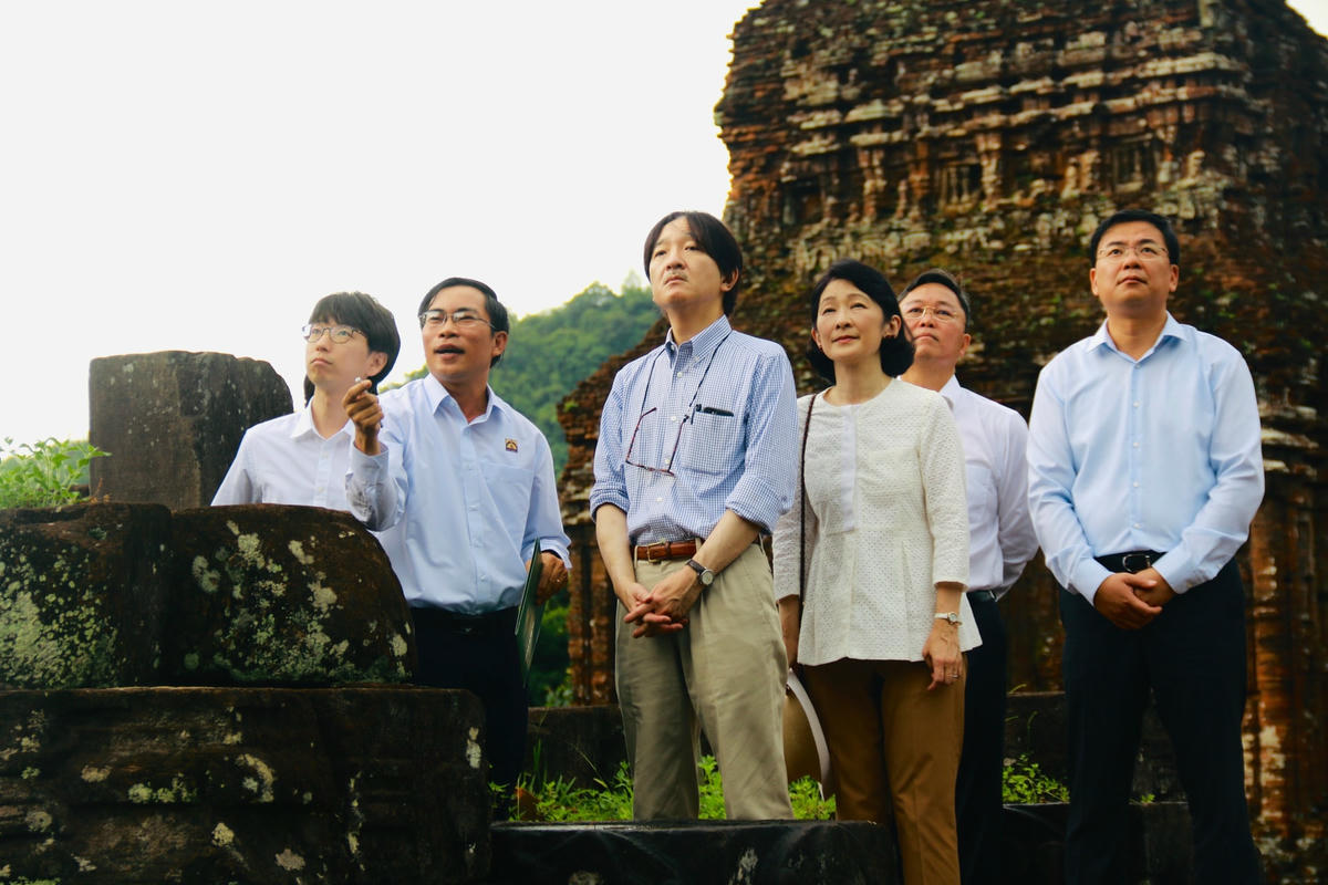 Tiếp đó, Hoàng Thái tử Akishino và Công nương đến tham quan khu tháp B-C-D trong thánh địa Mỹ Sơn. Trực tiếp nghe giới thiệu về lịch sử hình thành, vai trò của đền tháp trong đời sống tâm linh của nhà nước Chăm Pa và chiêm ngưỡng đền C1, đền B1. Đây là lần đầu tiên Hoàng Thái tử Akishino và Công nương Kiko đến với Di sản văn hóa thế giới Mỹ Sơn.