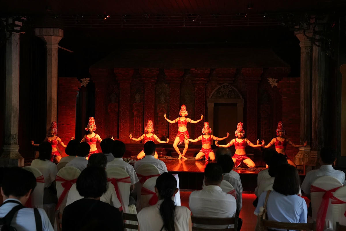 Tại Khu đền tháp Mỹ Sơn, Đoàn của Hoàng Thái tử Nhật Bản Akishino và Công nương Kiko được thưởng thức chương trình nghệ thuật “Huyền thoại Apsara” tại Nhà biểu diễn văn hóa Mỹ Sơn.