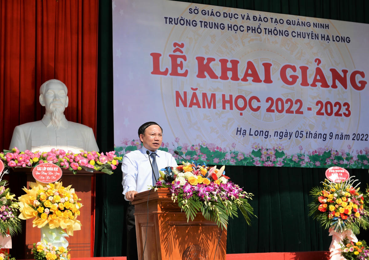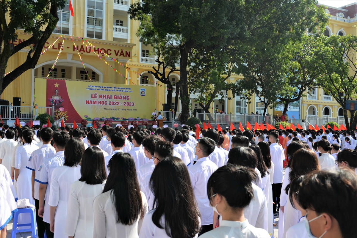 Từ sáng sớm ngày 5/9, các phụ huynh đã nô nức đưa con đến trường khai giảng.Nhiều phụ huynh đã chụp ảnh để lưu giữ lại kỷ niệm ngày con chính thức bước vào trường tiểu học.Phụ huynh ân cần hỏi han, chỉnh trang đồng phục cho con trước khi dự lễ khai giảng.Học sinh đầu cấp luôn được dành sự quan tâm đặc biệt trong ngày khai giảng.Các em học sinh tíu tít trò chuyện cùng nhau sau 3 tháng nghỉ hè mới gặp lại bạn bè.Thầy và trò trường Tiểu học Quang Trung (TP Hạ Long) vui tươi chào năm học mới.Các cô giáo trường Tiểu học Quang Trung duyên dáng trong tà áo dài thướt tha.Nữ sinh trường THPT Hòn Gai (TP Hạ Long) xinh xắn, rạng rỡ trong ngày khai giảng.Học sinh trường THPT Hòn Gai đứng trang nghiêm làm lễ chào cờ.Ông Nguyễn Xuân Ký, Ủy viên Trung ương Đảng, Bí thư Tỉnh ủy, Chủ tịch HĐND tỉnh Quảng Ninh dự và gióng trống khai giảng năm học mới tại Trường THPT Chuyên Hạ Long (TP Hạ Long).Lễ khai giảng tại trường THCS Mạo Khê II (thị xã Đông Triều).Các em học sinh đầu cấp được chào đón trong sự hân hoan, phấn khởi của thầy cô và các anh chị khối trên.Lễ khai giảng ở trường tiểu học Đồn Đạc (xã Đồn Đạc, huyện Ba Chẽ).Đây là ngôi trường ở huyện miền núi có nhiều học sinh là con em đồng bào dân tộc thiểu số theo học.