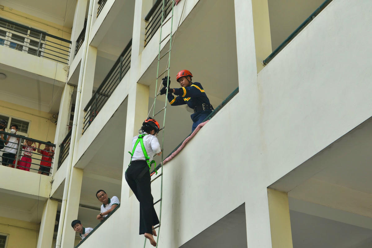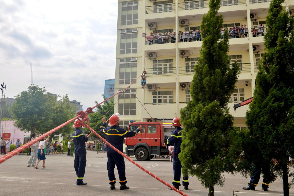 Em Vũ Nhật Quang, học sinh trường THPT Chuyên Hạ Long cho biết: Em cảm thấy rất vui và háo hứng khi được trải nghiệm đu dây thoát nạn. Mặc dù lúc đầu khá là run nhưng em đã thực hành thành công nhờ có các cán bộ, chiến sỹ PCCC&CNCH hướng dẫn và hỗ trợ nhiệt tình ạ…