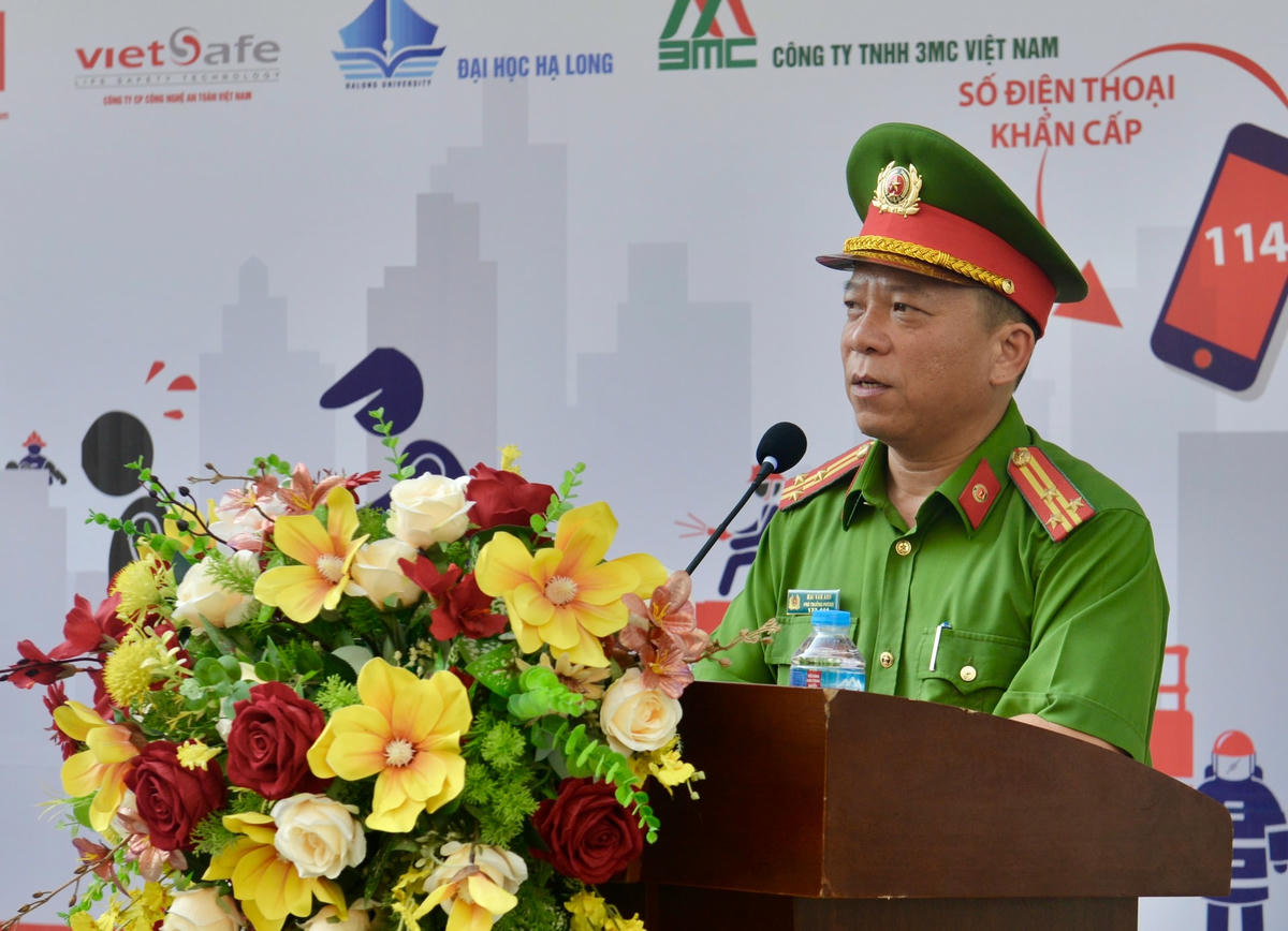 Phát biểu khai mạc chương trình, Thượng tá Mai Văn Anh, Phó Trưởng Phòng Cảnh sát PCCC&CNCH (Công an tỉnh Quảng Ninh) nhấn mạnh: Việc đề cao ý thức của người dân trong công tác PCCC&CNCH là hết sức quan trọng. Điều cần có trong công tác PCCC là phải lấy phòng cháy là chính, phòng cháy là cơ bản, chiến lược lâu dài, lấy phòng cháy để hạn chế chữa cháy; xác định phòng cháy là “xây”, chữa cháy là “chống”. Đồng thời, phải xác định phương châm PCCC là “4 tại chỗ” gồm: Lực lượng ở trong dân – Phương tiện ở trong dân – Hậu cần ở trong dân – Chỉ huy ở trong dân, để khi có cháy cần nhanh chóng chớp lấy “thời điểm vàng” chữa cháy, kịp thời huy động người dân tham gia chữa cháy.
