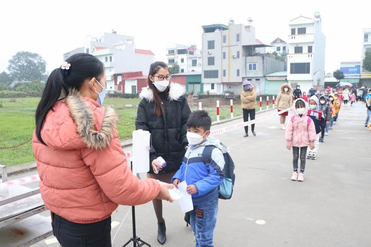 Ghi nhận tại Trường Tiểu học Thượng Mỗ (huyện Đan Phượng), dù trời rét đậm, kèm mưa phùn, nhưng các bậc phụ huynh vẫn đưa con đến trường để học trực tiếp từ sáng sớm. Công tác đón học sinh trở lại trường được các thầy cô thực hiện theo đúng kế hoạch.
