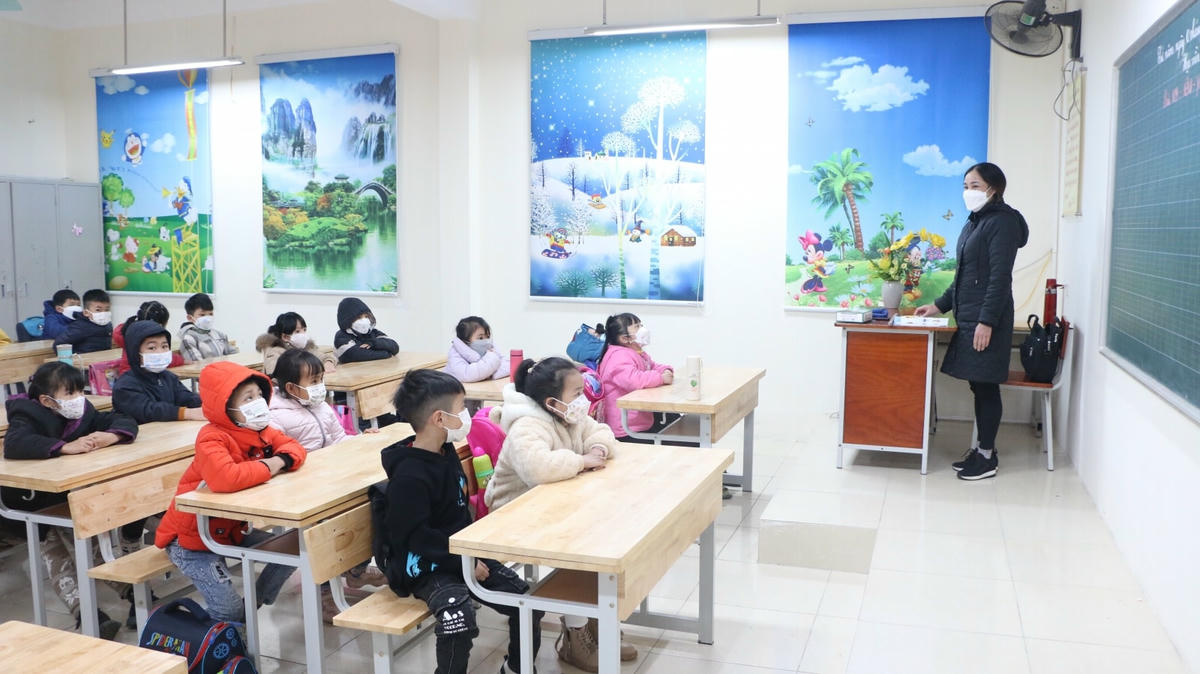 Sau hơn 9 tháng phải học online ở nhà, hôm nay, 10/2, học sinh từ lớp 1 đến lớp 6 của huyện, thị xã trên địa bàn TP Hà Nội đã trở lại trường học trực tiếp.