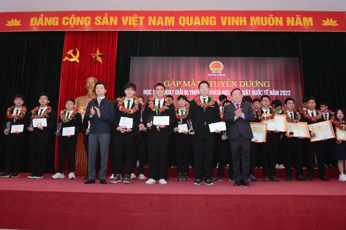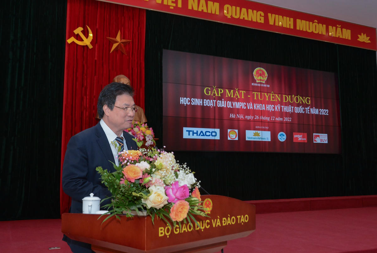 Phát biểu tại lễ tuyên dương, Thứ trưởng Bộ GDĐT Nguyễn Hữu Độ cho biết, năm 2022, kỳ thi chọn học sinh giỏi cấp quốc gia tiếp tục đổi mới và đạt được kết quả tốt. Bộ GDĐT cử 7 đoàn học sinh giỏi Việt Nam với 38 lượt học sinh tham gia, gồm: một đoàn Tin học tham dự Olympic khu vực Châu Á - Thái Bình Dương, một đoàn Vật lí tham dự Olympic khu vực Châu Á và 5 đoàn tham dự Olympic quốc tế là Toán, Hóa học, Sinh học, Vật lí và Tin học.