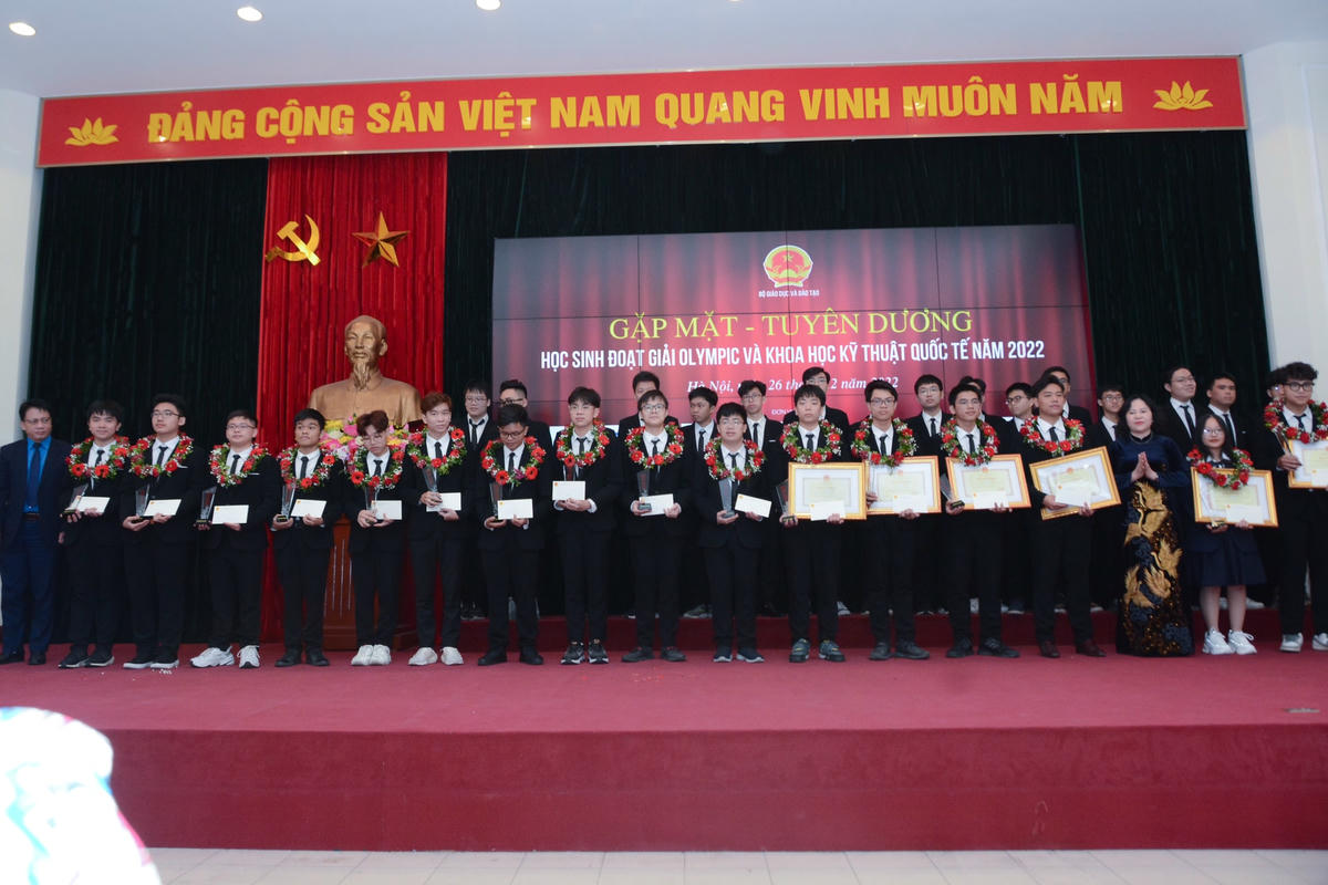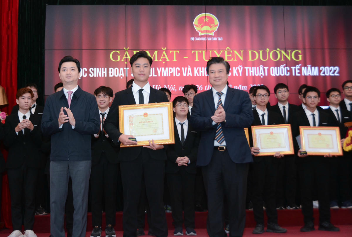 Sáng 26/12, Bộ GDĐT tổ chức gặp mặt, khen thưởng học sinh đoạt giải các kỳ Olympic và khoa học kỹ thuật quốc tế năm 2022.