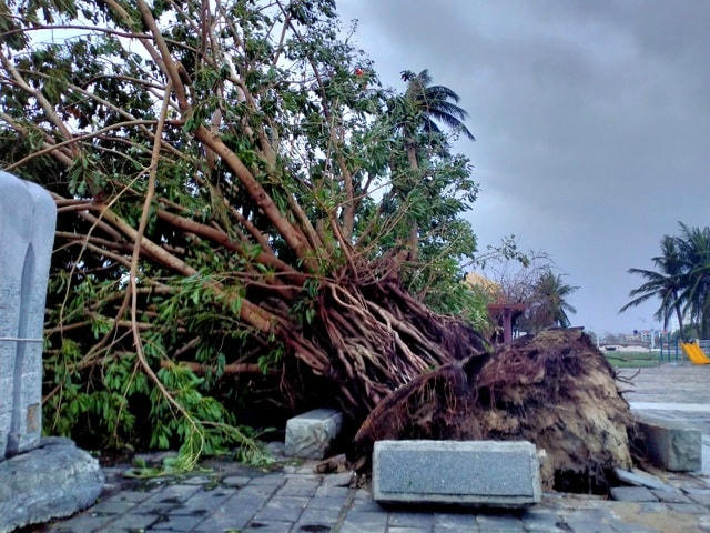 TP Hội An cũng tan hoang sau bão, hàng loạt các cây cổ thụ dọc tuyến đường Nguyễn Thị Minh Khai, Hùng Vương, Vườn Tượng An Hội... ngã đổ, bật trơ cả gốc.