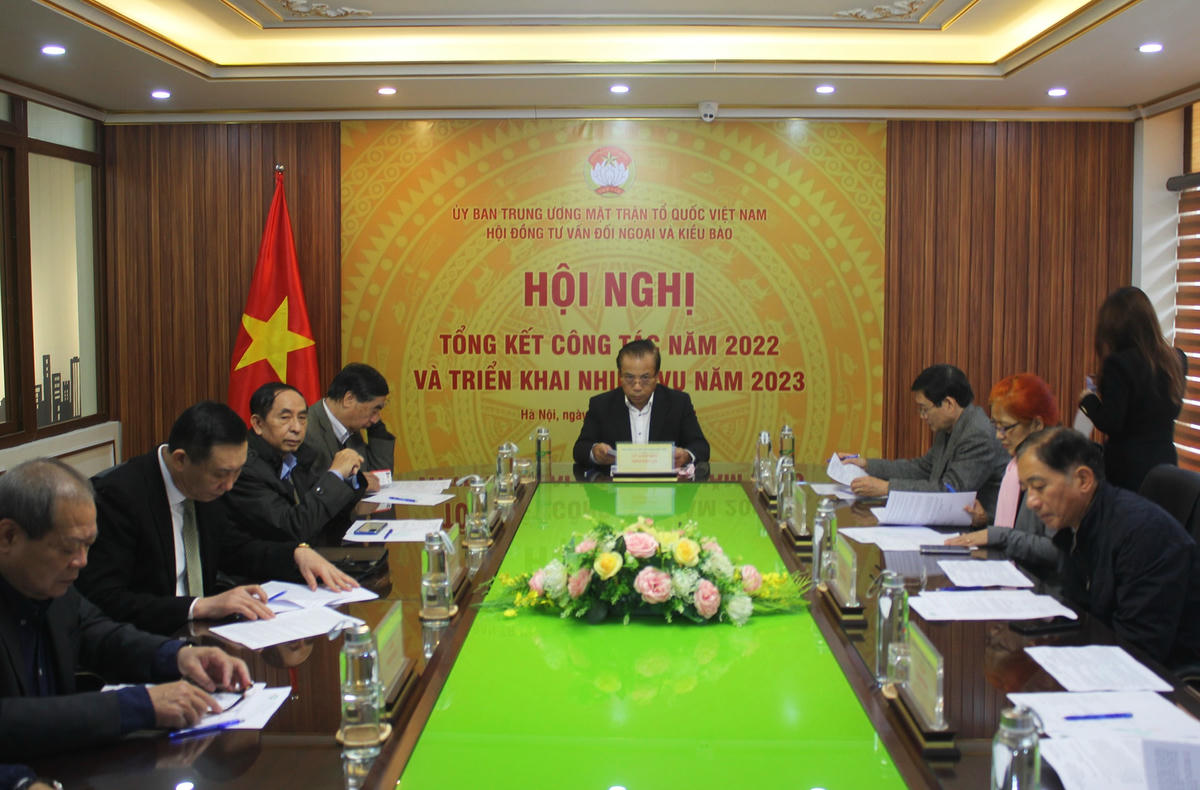 Ngày 6/1, tại Hà Nội, Hội đồng tư vấn Đối ngoại và Kiều bào UBTƯ MTTQ Việt Nam đã tổ chức Hội nghị tổng kết công tác năm 2022 và triển khai nhiệm vụ năm 2023.