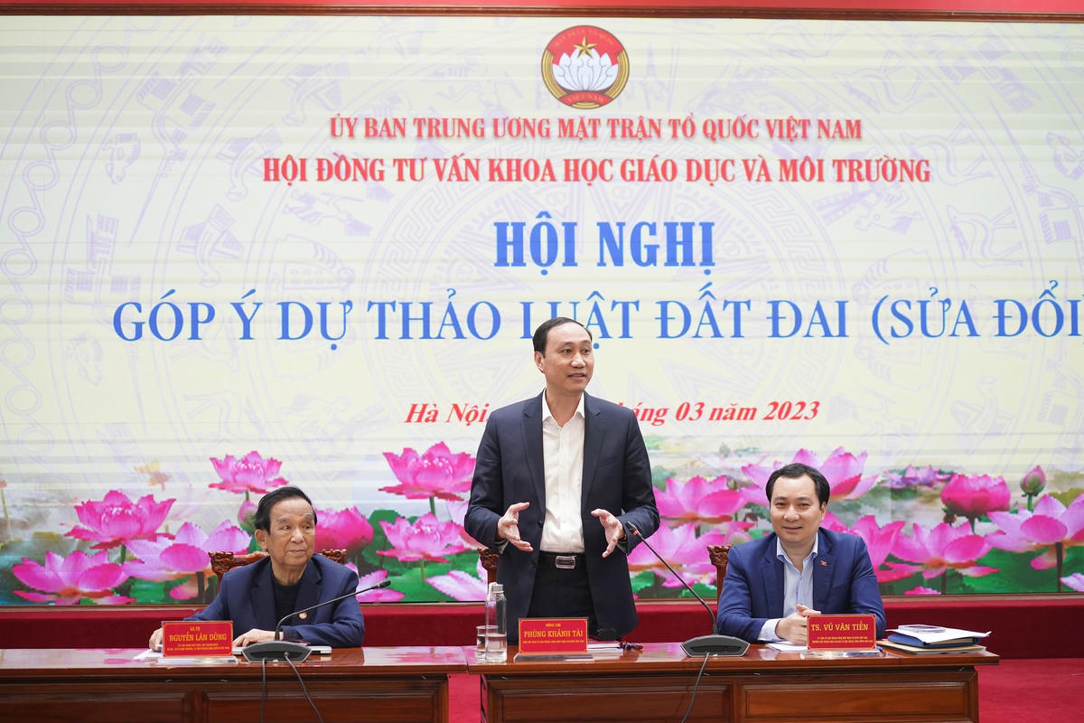 Hội đồng tư vấn Khoa học, Giáo dục và Môi trường UBTƯ MTTQ Việt Nam vừa tổ chức Hội nghị góp ý dự thảo Luật Đất đai (sửa đổi). Ông Phùng Khánh Tài, Phó Chủ tịch UBTƯ MTTQ Việt Nam dự và chủ trì Hội nghị.