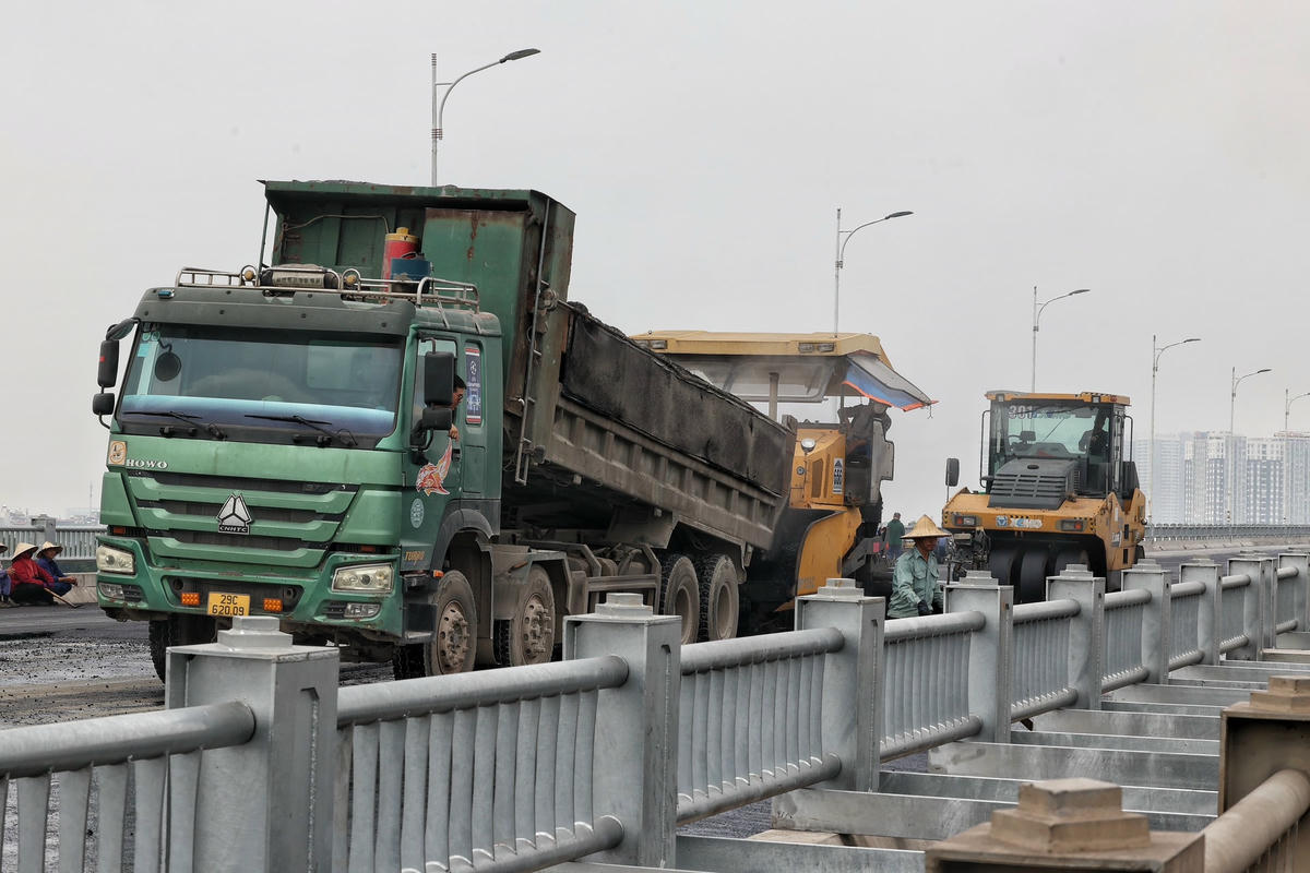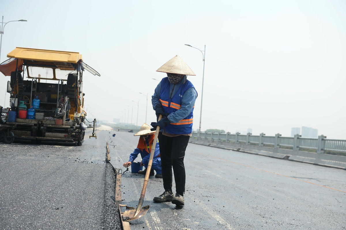 Công trình cầu Vĩnh Tuy 2 được khởi công xây dựng tháng 1/2021 với tổng mức đầu tư hơn 2.500 tỷ đồng. Dự án có tổng chiều dài và đường dẫn hơn 3,5 km; mặt cắt ngang 19,3 m được thiết kế gồm 53 nhịp. Điểm đầu giao với đường Nguyễn Khoái và phố Minh Khai, điểm cuối giao với đường Long Biên - Thạch Bàn, đường Cổ Linh.Đến nay gói thầu số 2 thuộc Dự án cầu Vĩnh Tuy, Hà Nội giai đoạn 2 với 5 gói thầu xây dựng đã hoàn thành và đang thảm nhựa.Theo ghi nhận của PV Báo Đại Đoàn Kết Online, ngay từ sáng sớm trên công trường Dự án cầu Vĩnh Tuy giai đoạn 2 đã vang tiếng máy móc, công nhân lao động để triển khai các mũi thi công.Đường dẫn cầu từ phía trung tâm TP Hà Nội đi Long Biên đã được khớp nối.Ông Đỗ Đức Long, Phó tư vấn giám sát Gói thầu số 2 Dự án cầu Vĩnh Tuy cho hay, trên công trường hiện nay ở phần cầu dẫn đã bắt đầu thực hiện công tác thảm bê tông mặt cầu, sau khi thảm xong sẽ tiến hành lắp khe co giãn ở toàn bộ mặt cầu và đây cũng là một trong những giai đoạn cuối cùng của dự án. Dự kiến hết tuần này sẽ thảm xong phần gói thầu số 2. Nhiệt độ của vật liệu khi đưa ra thảm khoảng 150 độ C, cùng với cái nắng 40 độ C của Hà Nội các công nhân vẫn cố gắng đưa dự án về đích sớm nhất có thể.Anh Phạm Sĩ Lịch, Chỉ huy trưởng công trường Gói thầu số 2 chia sẻ, với điều kiện thời tiết nắng nóng như hiện nay, việc thi công hạng mục bê tông nhựa các công nhân sẽ bắt vào làm từ 5h sáng, buổi trưa nghỉ quá hơn so với thời gian thường, còn buổi chiều sẽ làm đến 18h30.Sau khi hoàn thành giai đoạn 2, cầu Vĩnh Tuy sẽ là cầu có chiều rộng mặt cắt ngang lớn nhất Hà Nội với 8 làn xe ô tô (40 m).Các công nhân hối hả thi công.Mặc dù thời tiết nắng nóng và cùng với sức nóng của nhựa thảm, nhưng các công nhân đều quyết tâm hoàn thành nhiệm vụ được giao.