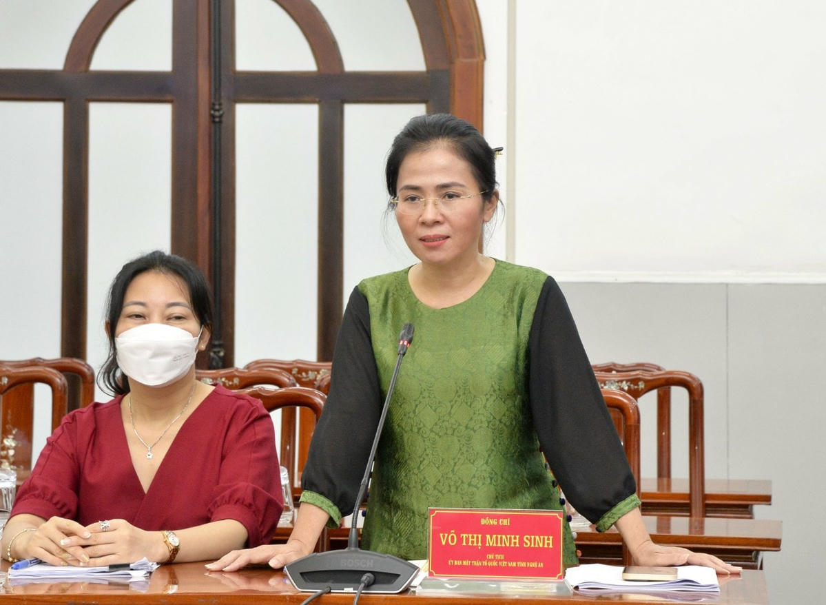 Tại điểm cầu UBTƯ MTTQ Việt Nam, bà Võ Thị Minh Sinh, Chủ tịch Ủy ban MTTQ Việt Nam tỉnh Nghệ An cho biết, ngay từ đầu năm 2020, MTTQ tỉnh Nghệ An đã ký hợp đồng với VNPT về công tác tuyên truyền, với phương châm “có đi thì có đến” đã tích cực triển khai và nâng cấp trang thông tin điện tử của MTTQ tỉnh và Fanpage trên Facebook.