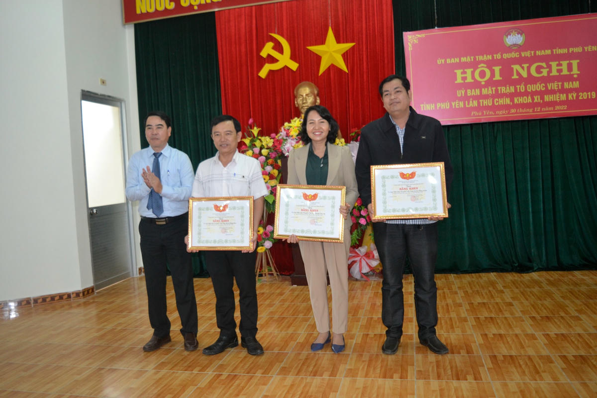 Nhân dịp này, Ủy ban MTTQ Việt Nam tỉnh Phú Yên tặng cờ xuất sắc toàn diện cho Ủy ban MTTQ Việt Nam huyện Sông Hinh và tặng cờ xuất sắc cho Ủy ban MTTQ Việt Nam TP. Tuy Hòa, và tặng bằng khen cho 33 tập thể và 52 cá nhân có thành tích xuất sắc trong công tác mặt trân năm 2022.