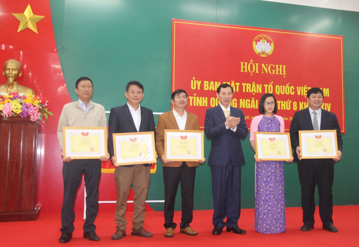 Dịp này, thừa ủy quyền của UBTƯ MTTQ Việt Nam, ông Đặng Ngọc Huy, Phó Bí thư Thường trực Tỉnh ủy Quảng Ngãi đã trao tặng cờ thi đua xuất sắc năm 2022 của UBTƯ MTTQ Việt Nam cho Ủy ban MTTQ Việt Nam tỉnh Quảng Ngãi và UBTƯ MTTQ Việt Nam cũng tặng Bằng khen cho 14 tập thể và 15 cá nhân trên địa bàn tỉnh Quảng Ngãi đã có thành tích xuất sắc trong công tác Mặt trận năm 2022.