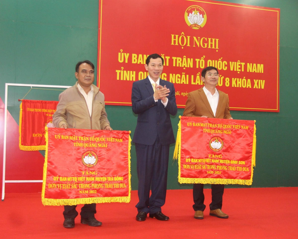 Ngoài ra, Ủy ban MTTQ Việt Nam tỉnh Quảng Ngãi đã tặng cờ thi đua xuất sắc năm 2022 cho Ủy ban MTTQ Việt Nam huyện Bình Sơn và huyện Trà Bồng.