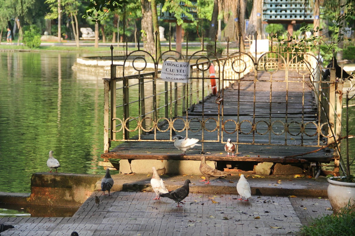 Công viên Bắc Linh Đàm (quận Hoàng Mai) xuống cấp nghiêm trọng, lối đi sụt lún, hàng quán vây quanh từ ngoài vào trong. Ngay cả cổng chính giữa lối vào công viên hiện đã bị các quầy bán bánh trung thu chắn ngang. Phòng bảo vệ trở thành quầy bán bánh mì. Đi sâu vào bên trong là sự ngổn ngang của các quán bia, hàng ăn, quán café…