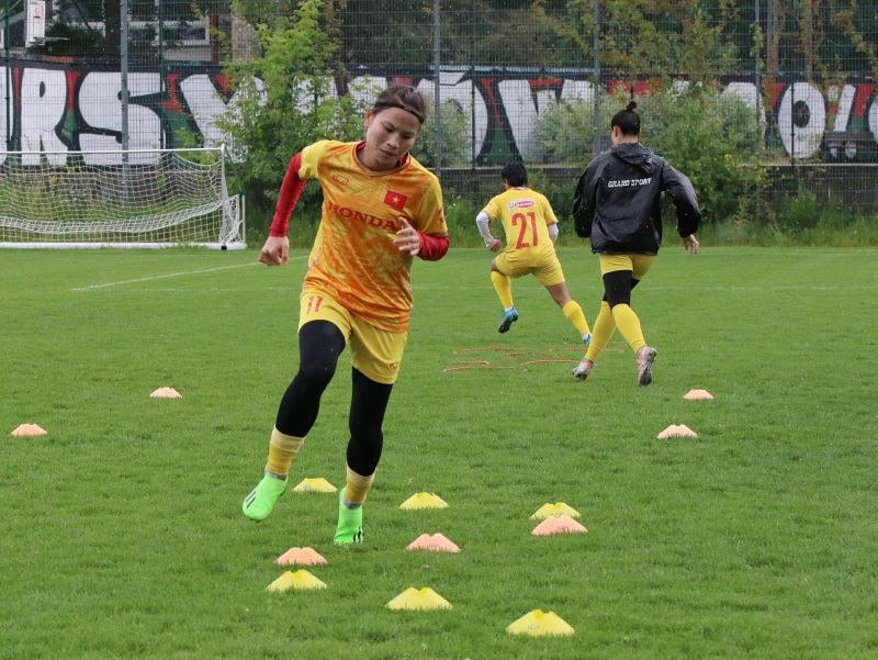 Ngày 18/6, dù gặp phải cơn mưa nặng hạt ngay khi vừa bắt đầu buổi tập nhưng ĐT nữ Việt Nam vẫn tập luyện tích cực và hiệu quả. Các cầu thủ đều hoàn thành giáo án của ban huấn luyện. Trước buổi tập, HLV Mai Đức Chung dành thời gian động viên và nhắc nhở các học trò tập luyện và làm quen với thời tiết tại đây, bởi khung thời gian của buổi tập cũng chính là thời gian sẽ diễn ra trận giao hữu vào ngày mai.