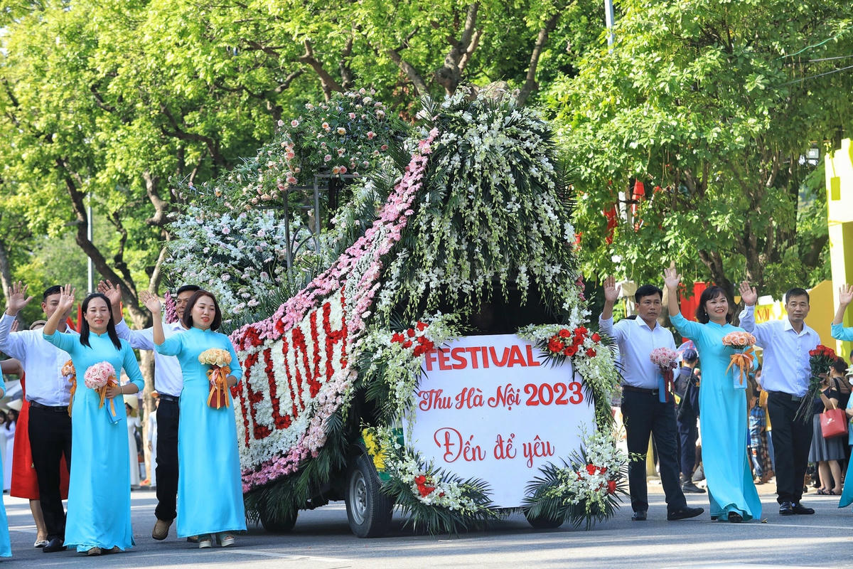 Đoàn xe hoa Mê Linh rực rỡ với sắc màu của vùng hoa ven ngoại thành Hà Nội. Đoàn diễu hành thanh niên với các tiết mục chào Thu, diễu hành áo dài kết hợp cùng xe đạp trang trí hoa, diễu hành áo dài kết hợp cùng xích lô trang trí hoa.