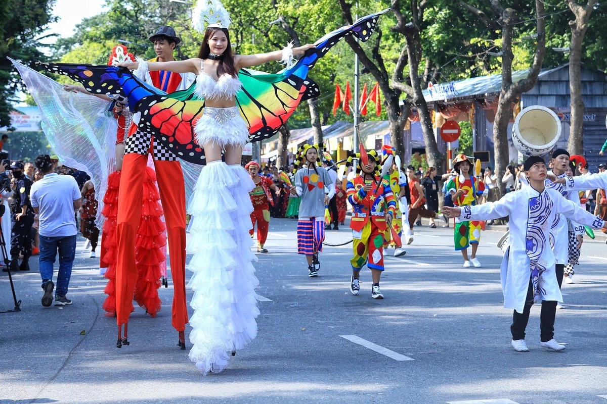 Trong đó, phần biểu diễn của các quận, huyện tôn vinh những làng nghề và các doanh nghiệp du lịch của thành phố; phần biểu diễn nghệ thuật đường phố mang đến một sắc thái năng động.