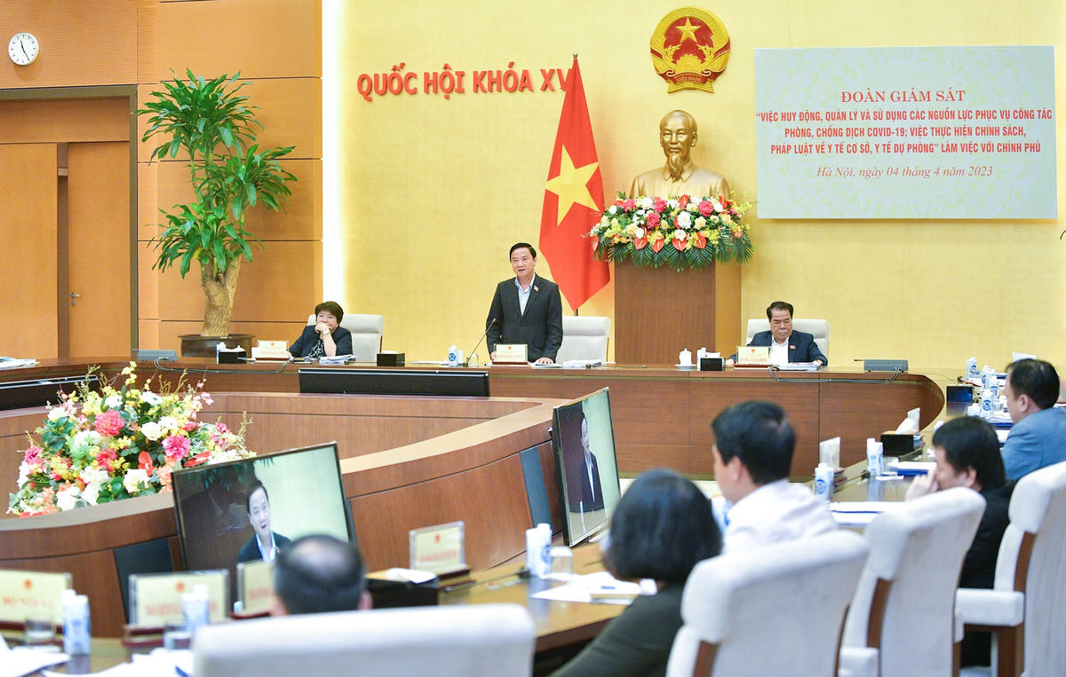 Ngày 4/4, Đoàn giám sát chuyên đề của Quốc hội về việc huy động, quản lý và sử dụng các nguồn lực phục vụ công tác phòng, chống dịch Covid-19; việc thực hiện chính sách, pháp luật về y tế cơ sở, y tế dự phòng đã làm việc với Chính phủ.