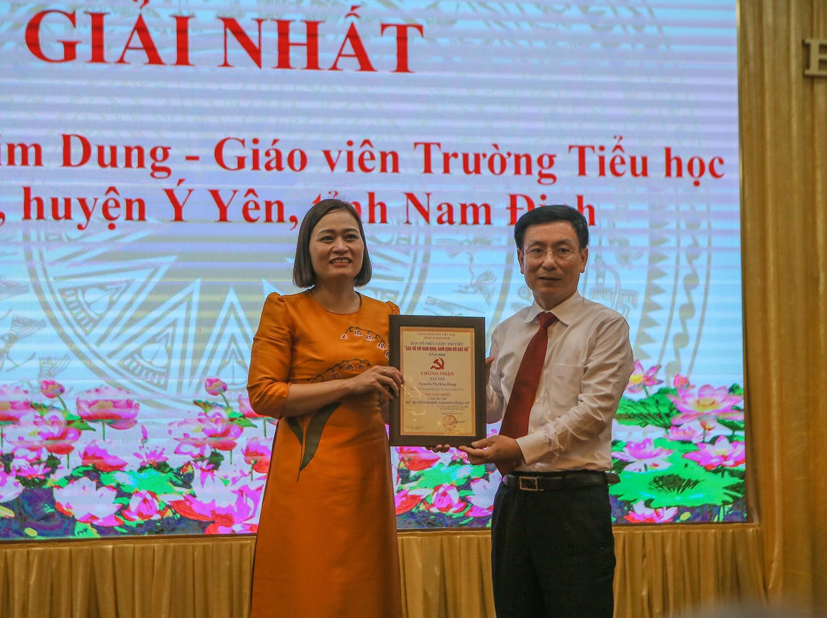 Cô giáo Nguyễn Thị Kim Dung, giáo viên Trường Tiểu học xã Yên Trị, huyện Ý Yên được trao giải Nhất.