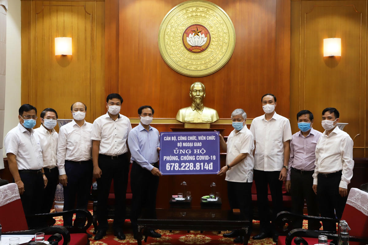 Trao số tiền ủng hộ cho UBTƯ MTTQ Việt Nam, Ủy viên Trung ương Đảng, Bộ trưởng Bộ Ngoại giao Bùi Thanh Sơn cho biết hưởng ứng lời kêu gọi của Chủ tịch nước, Thủ tướng Chính phủ, Đoàn Chủ tịch UBTƯ MTTQ Việt Nam và Bộ Ngoại giao, kể từ khi đợt dịch bùng phát lần thứ 4, cộng đồng người Việt Nam ở nước ngoài hết sức quan tâm, theo dõi, bày tỏ sẵn sàng đồng hành và chia sẻ với đồng bào trong nước phòng, chống dịch Covid-19.