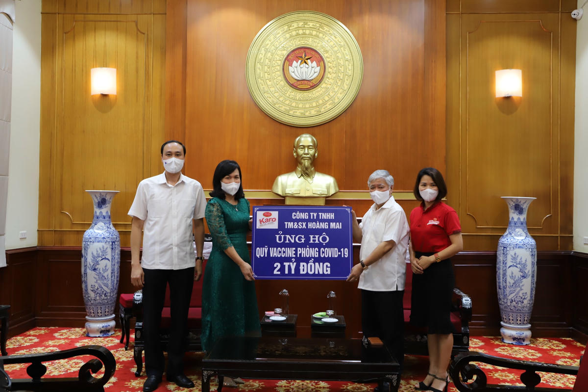 Đến UBTƯ MTTQ Việt Nam trao số tiền ủng hộ 2 tỷ đồng vào Quỹ vaccine, bà Nguyễn Thị Tuyết Mai, Tổng Giám đốc Công ty TNHH Thương mại và Sản xuất Hoàng Mai cho biết, với mong muốn chung sức cùng đất nước đẩy lùi đại dịch, ngày 15/6/2021, công ty đã phát động chương trình “Vuông tròn yêu thương - Cùng góp 2.000đ/mỗi túi bánh vào Quỹ vaccine phòng, chống dịch Covid-19” trên toàn quốc nhằm mục đích huy động 3 tỷ đồng ủng hộ Quỹ.