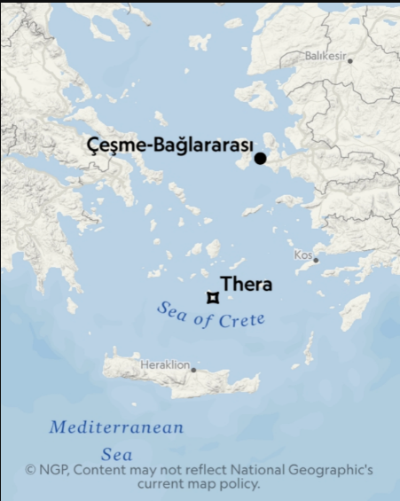 Bài báo cho biết, công cuộc nghiên cứu được triển khai tại địa điểm khảo cổ Çesme -Bağlararası, nằm ở thị trấn nghỉ mát nổi tiếng Çesme trên bờ biển Aegean của Thổ Nhĩ Kỳ, cách “thiên đường" Santorini hơn 100 dặm về phía Bắc Đông Bắc. Các cuộc điều tra bắt đầu vào năm 2002, sau khi đồ gốm cổ được tìm thấy trong quá trình xây dựng một tòa nhà chung cư.