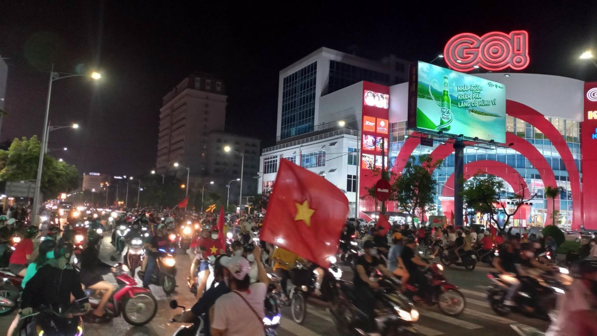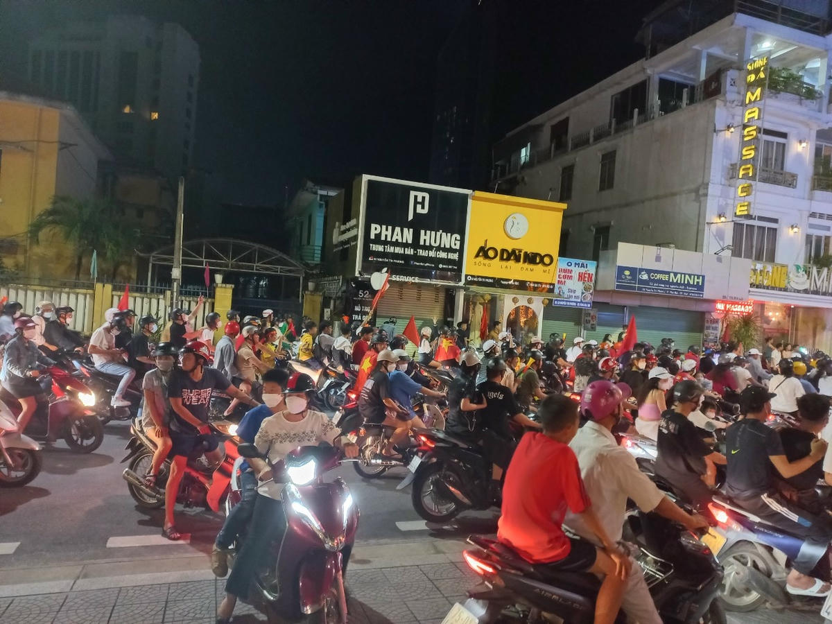 Sau khi kết thúc trận chung kết giữa U23 Việt Nam và U23 Thái Lan, hàng nghìn người dân tập trung về các tuyến đường trung tâm TP Huế để đi “bão” ăn mừng chiến thắng của thầy trò HLV Park Hang-seo.