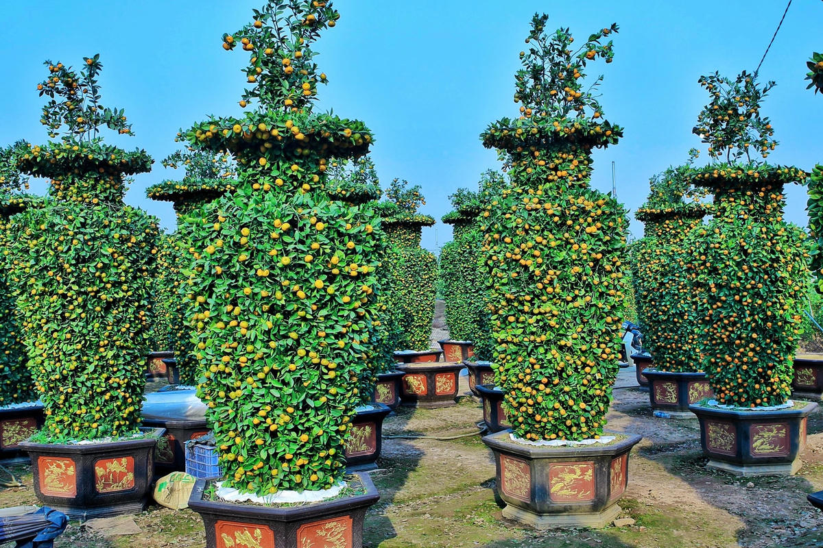 Hưng Yên: Vườn quất tạo dáng lộc bình khổng lồ độc đáo