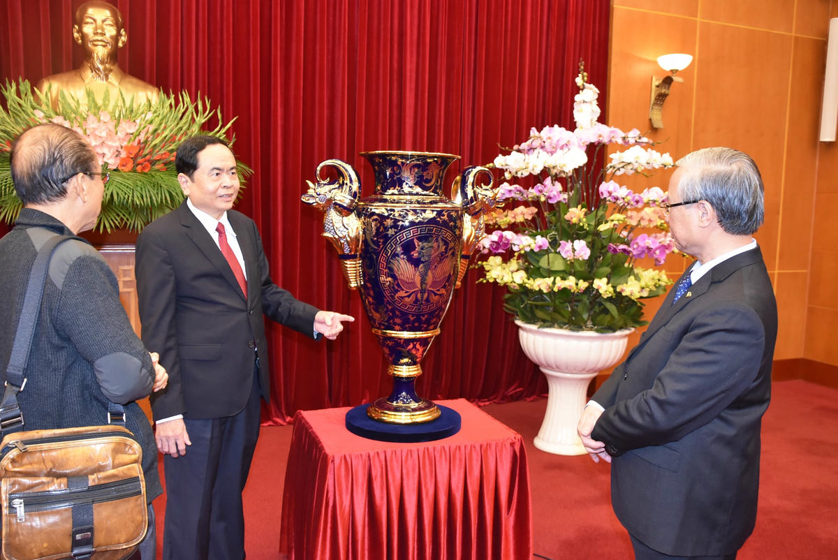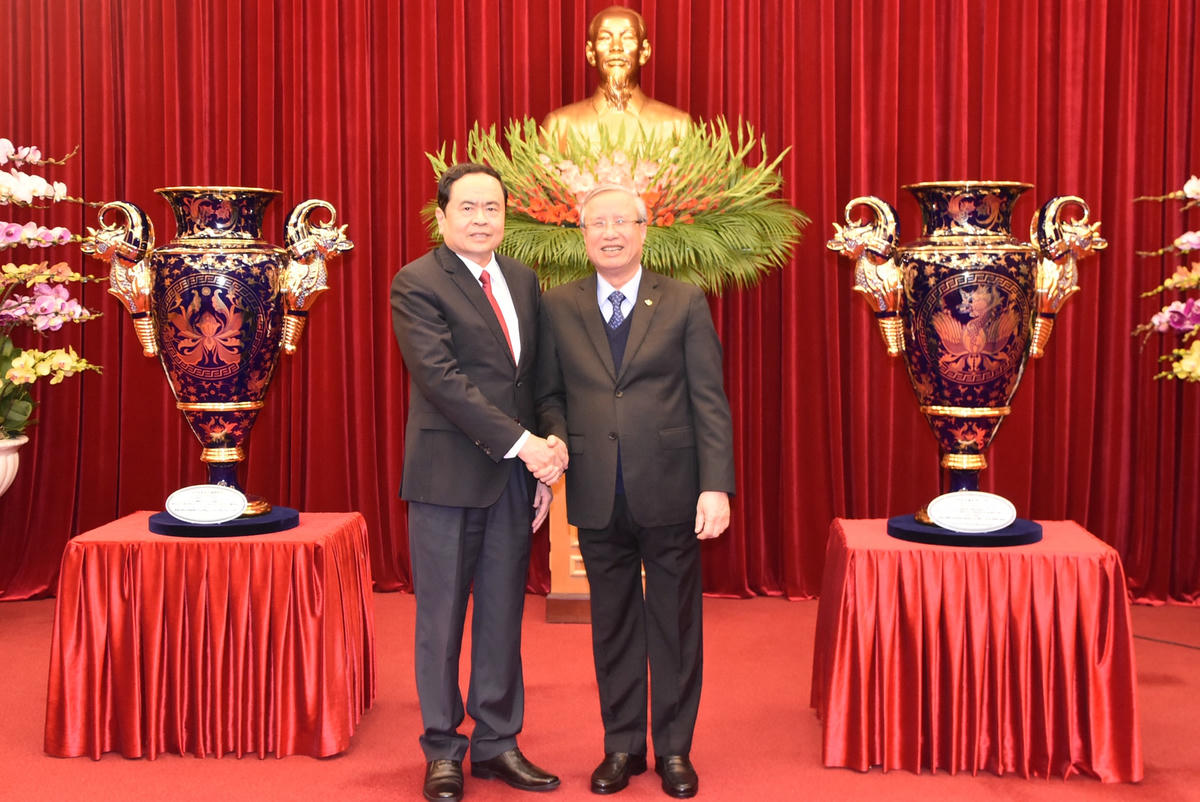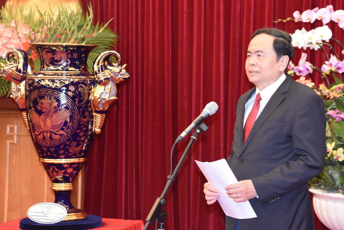 Trân trọng cảm ơn những tình cảm của UBTƯ MTTQ Việt Nam – nơi tập hợp tinh thần đoàn kết của các tầng lớp nhân dân; cảm ơn tình cảm của các nghệ nhân, người lao động của Công ty TNHH Minh Long 1, Thường trực Ban Bí thư Trần Quốc Vượng nêu rõ, trong những ngày này, các cấp ủy, chính quyền, MTTQ Việt Nam, các tầng lớp nhân dân ở trong nước và đồng bào ta ở nước ngoài đều hướng về sự kiện có ý nghĩa trọng đại của Đảng, của đất nước, đó là Đại hội đại biểu toàn quốc lần thứ XIII của Đảng sẽ diễn ra từ ngày 25/1/2021 đến ngày 2/2/2021 tại Thủ đô Hà Nội. Đây cũng là dịp có nhiều hoạt động hướng tới kỷ niệm 91 năm Ngày thành lập Đảng Cộng sản Việt Nam.