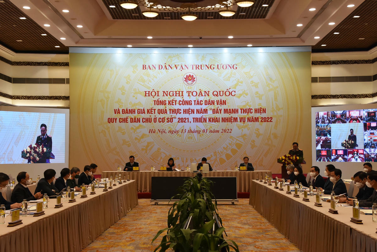Ngày 13/1, tại Hà Nội, Ban Dân vận Trung ương tổ chức Hội nghị toàn quốc tổng kết công tác dân vận và đánh giá kết quả thực hiện năm “Đẩy mạnh thực hiện quy chế dân chủ ở cơ sở” năm 2021, triển khai nhiệm vụ năm 2022.