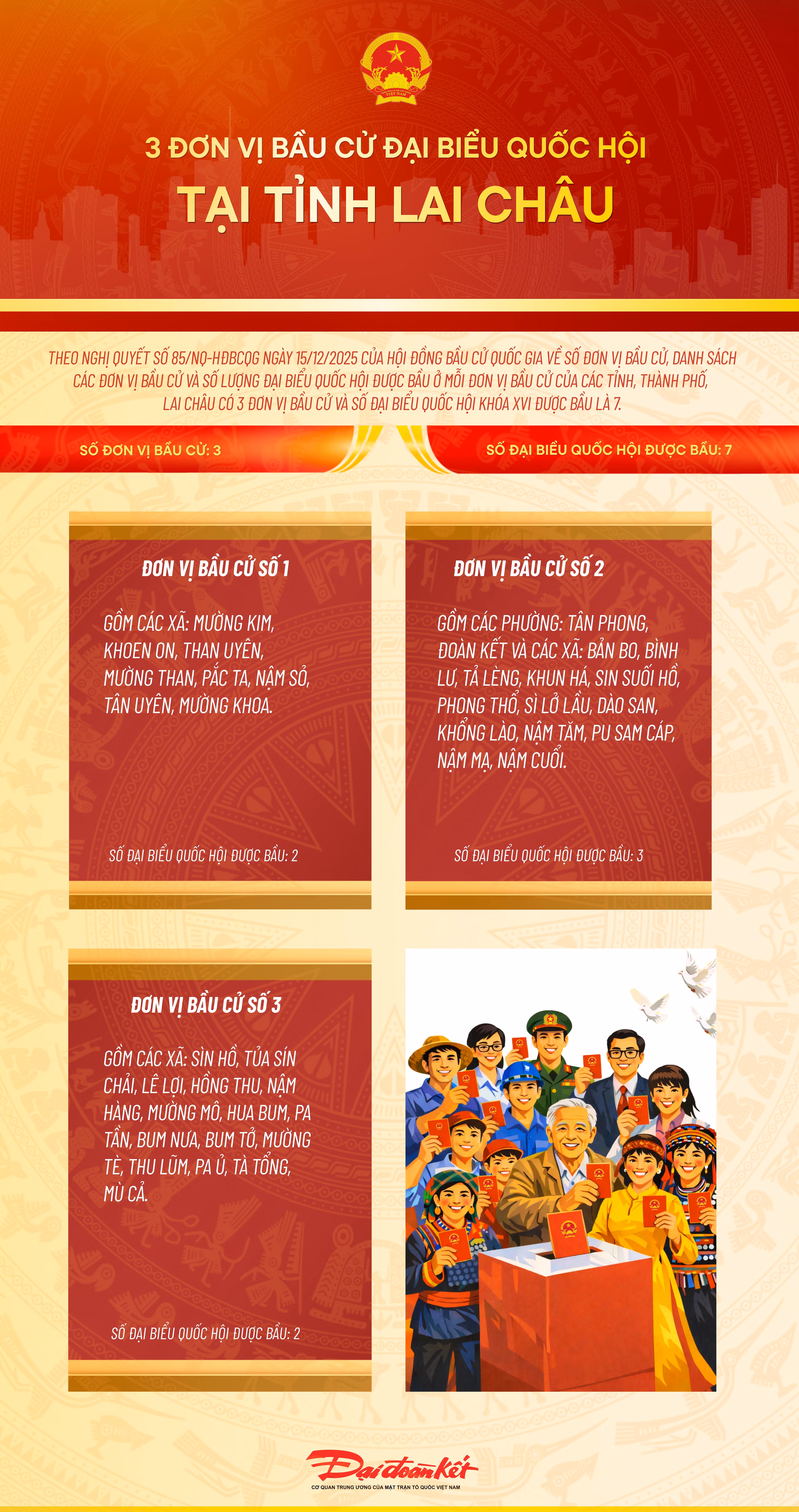 Infographic: 3 đơn vị bầu cử đại biểu Quốc hội tại tỉnh Lai Châu