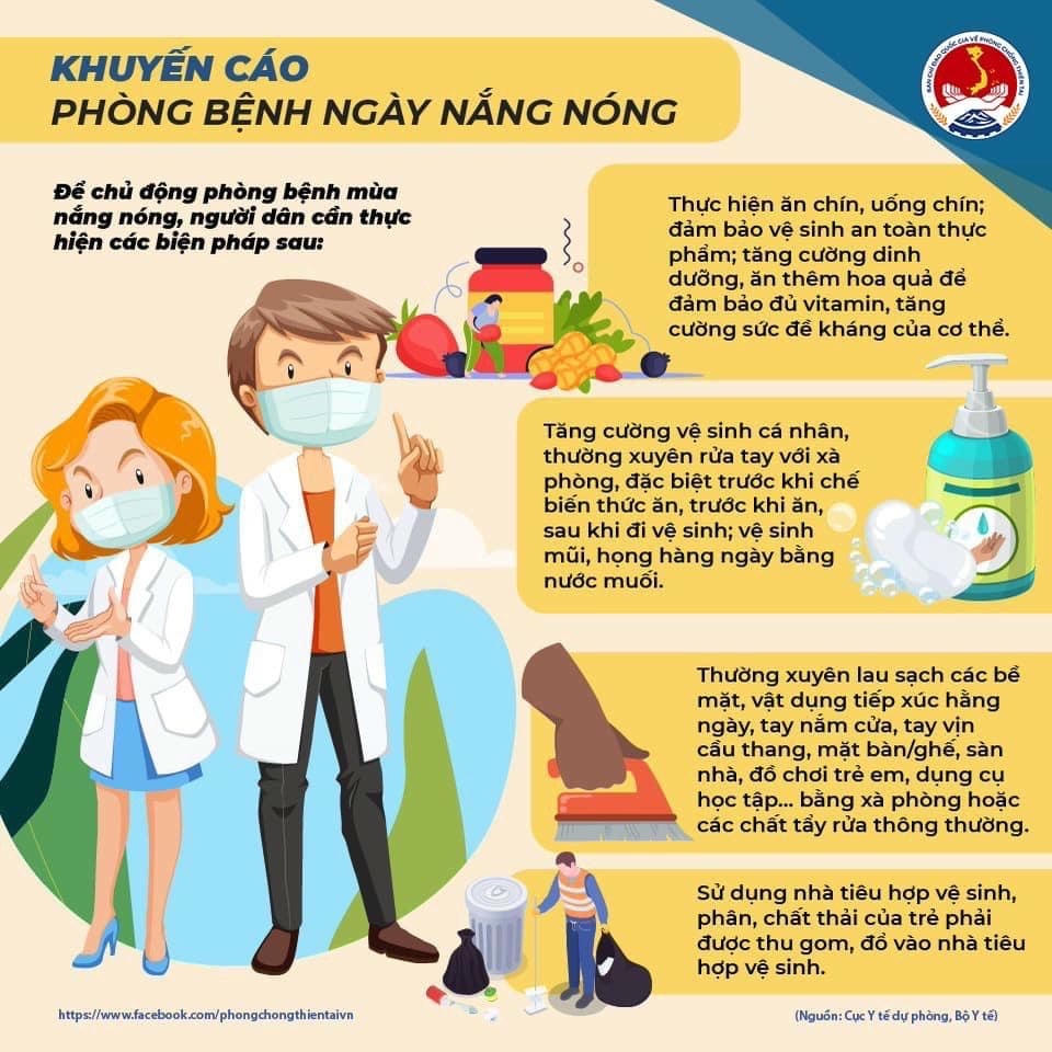 Để chủ động phòng bệnh mùa nắng nóng, Văn phòng thường trực Ban Chỉ đạo quốc gia về Phòng, chống thiên tai khuyến cáo người dân thực hiện các biện pháp sau: