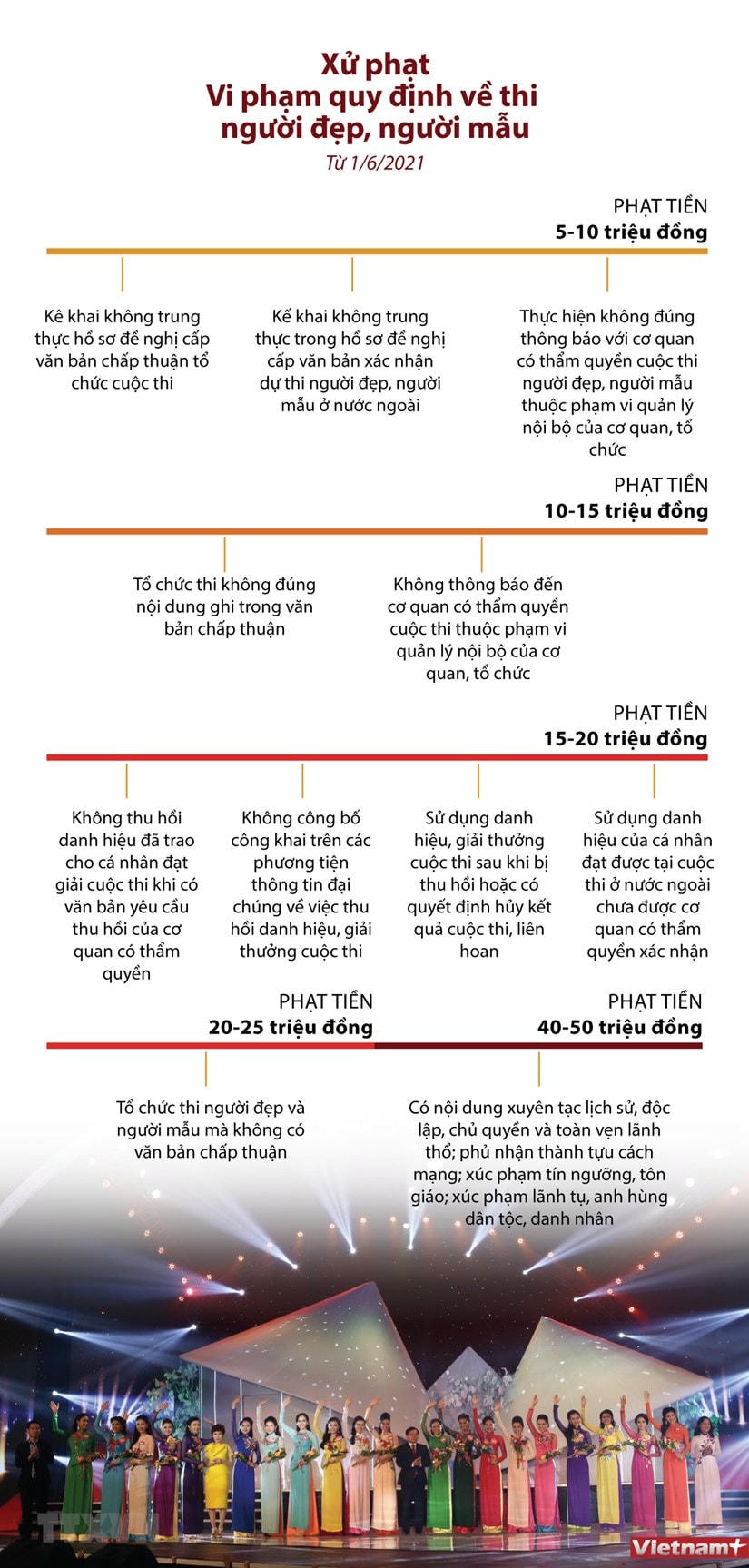 [Infographics] Các mức xử phạt vi phạm quy định về thi người đẹp