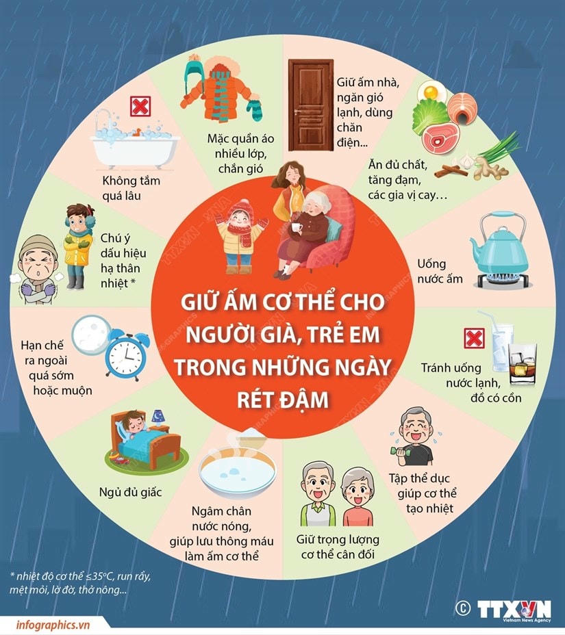 [Infographics] Giữ ấm cho người già, trẻ em trong những ngày rét đậm