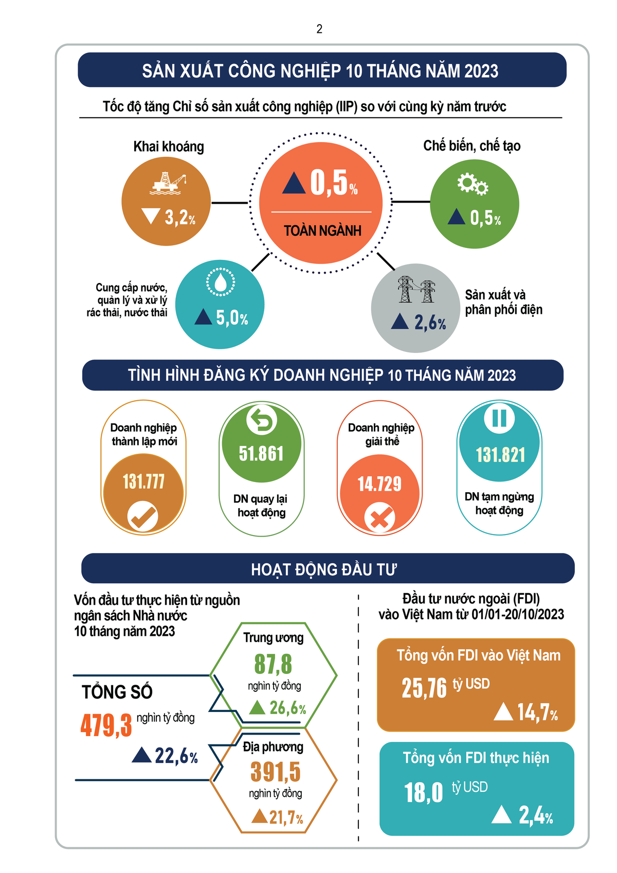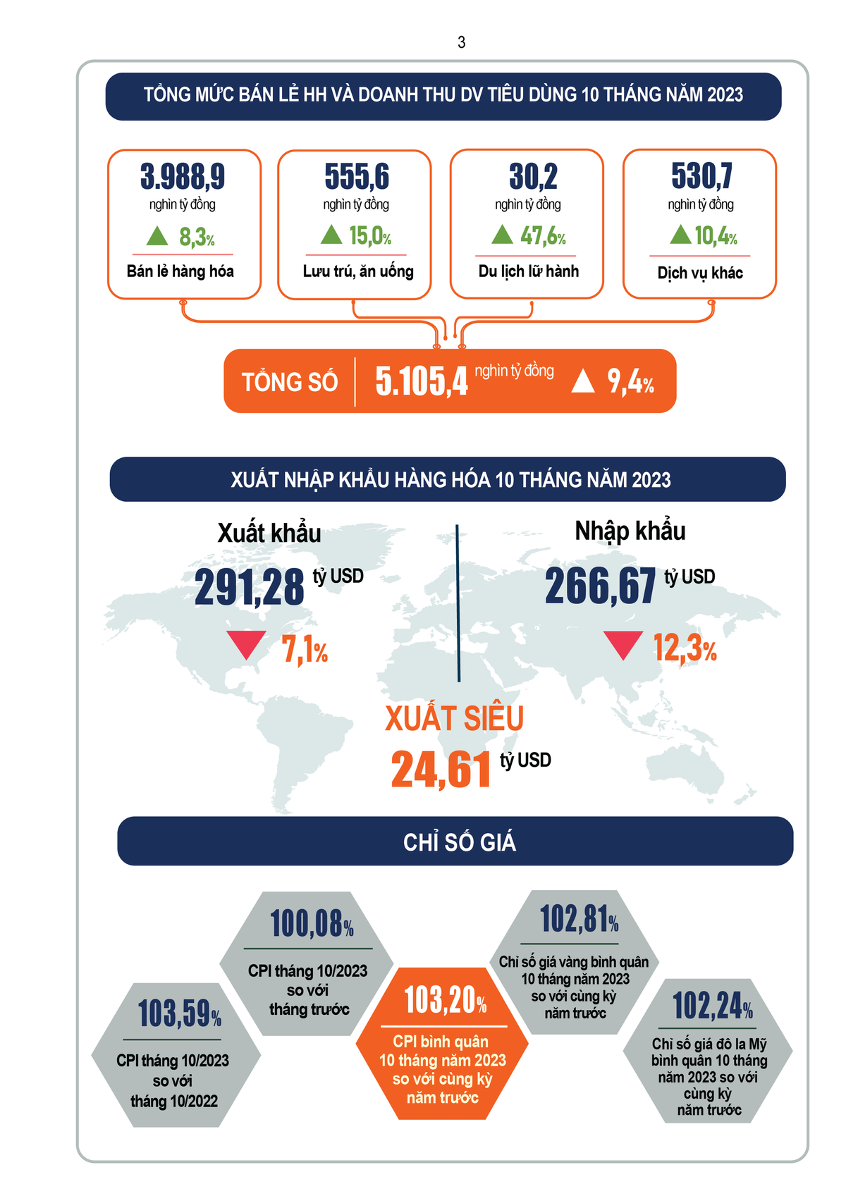 [Infographics] Tình hình kinh tế - xã hội Việt Nam tháng 10 và 10 tháng năm 2023