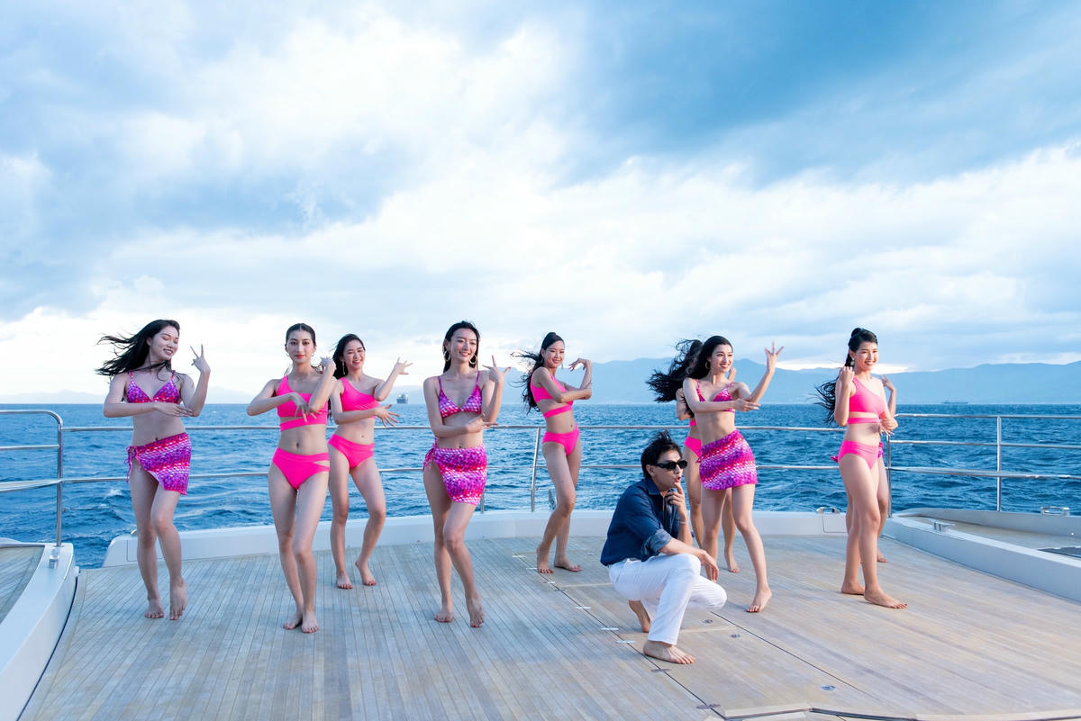 Isaac kết hợp cùng Top 37 thí sinh Miss World Vietnam nhảy múa trên bãi biển