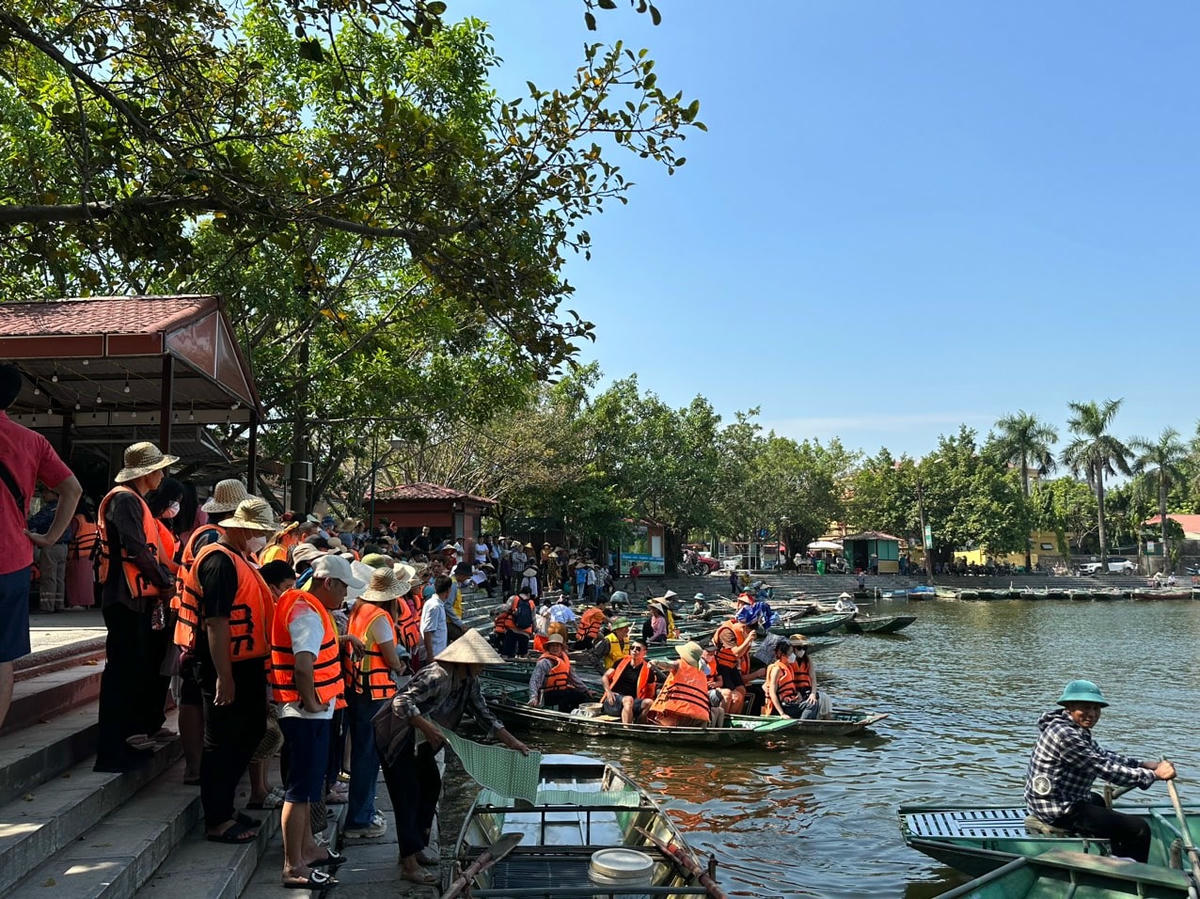 Còn tại KDL sinh thái Tràng An, lượng khách ‘đổ bộ’ đến đây cũng tăng cao trong 2 ngày vừa qua. Từ khu vực bãi đỗ xe, điểm bán vé, đón khách, xuống đò đều có người hướng dẫn, hỗ trợ đem lại sự hài lòng và ấn tượng tốt đẹp của du khách.