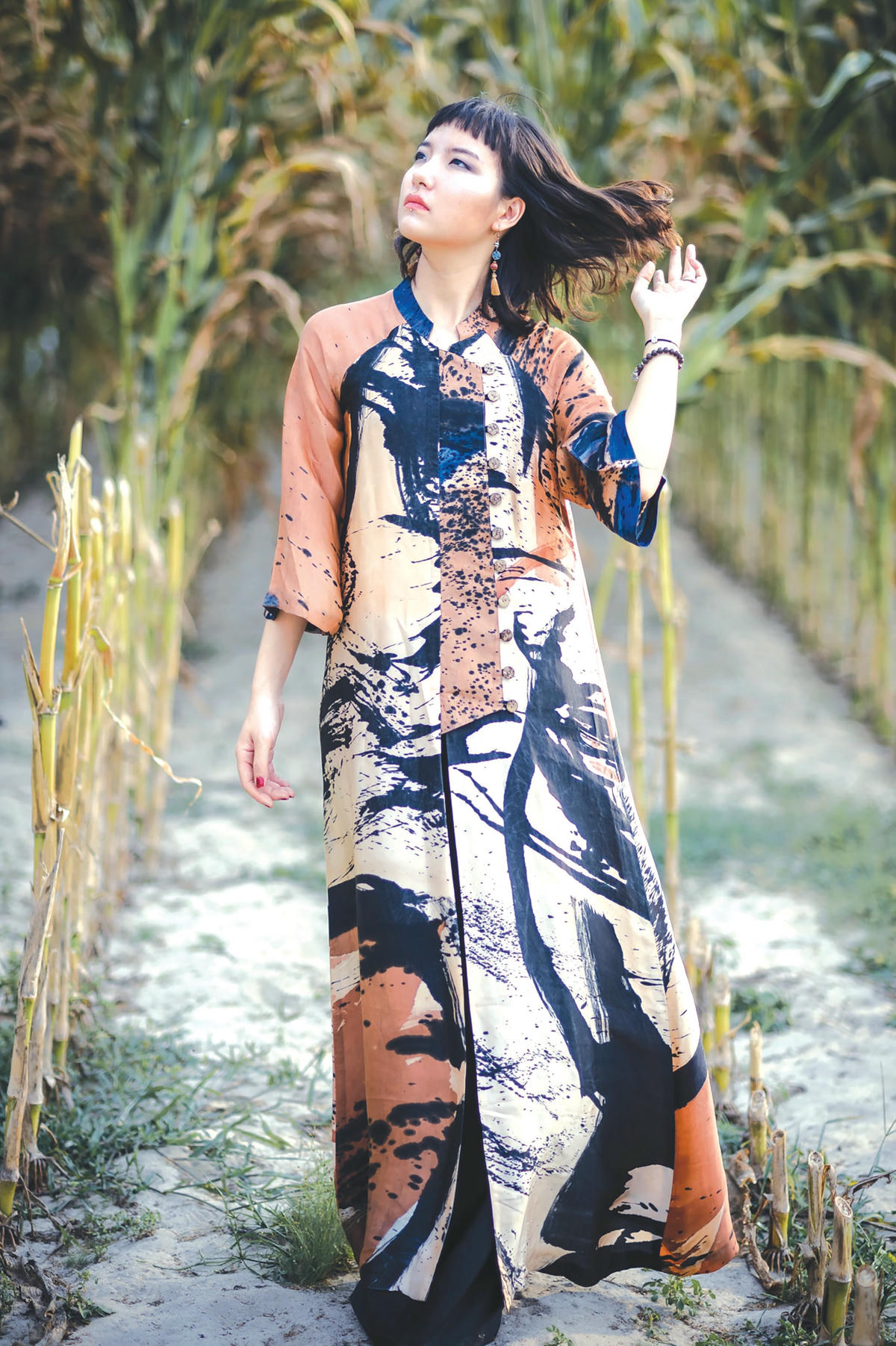 Vì mong muốn kế thừa truyền thống và phát triển từ văn hóa của người Việt từ góc độ hội hoạ, nghệ sĩ Thu Trần (Trần Thị Thu) thiết kế áo dài từ lụa tơ tằm Việt Nam với các họa tiết vẽ tay theo phong cách riêng biệt. Họa sĩ Nguyễn Đức Bình cùng CLB Đình Làng Việt nỗ lực nhiều năm cho việc giữ gìn, quảng bá hình dáng của Áo dài ngũ thân truyền thống đã có từ thời Nguyễn. Nghệ sĩ Võ Thị Trân Châu đã thực hiện tác phẩm “Thuỷ Ảnh” - như kể lại một giai đoạn lịch sử thăng trầm của dân tộc thông qua nghệ thuật thị giác.