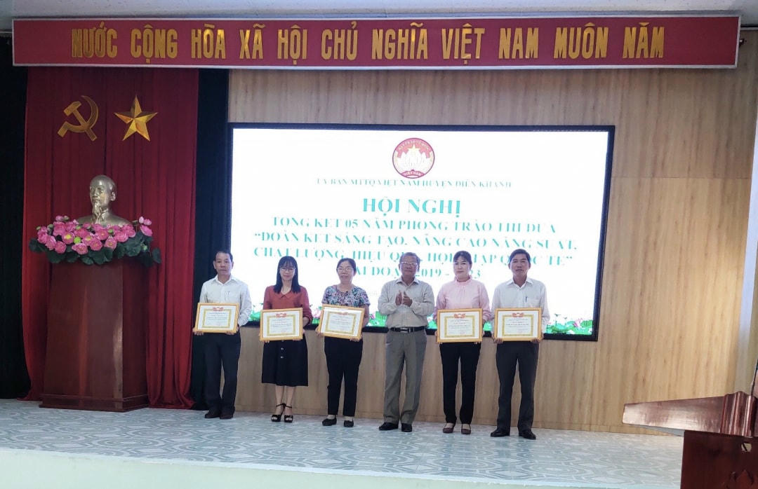 Nhân dịp này, Uỷ ban MTTQ Việt Nam huyện Diên Khánh tặng giấy khen 5 tập thể và 5 cá nhân đã có thành tích xuất sắc trong Phong trào thi đua “Đoàn kết sáng tạo” giai đoạn 2019 - 2023.