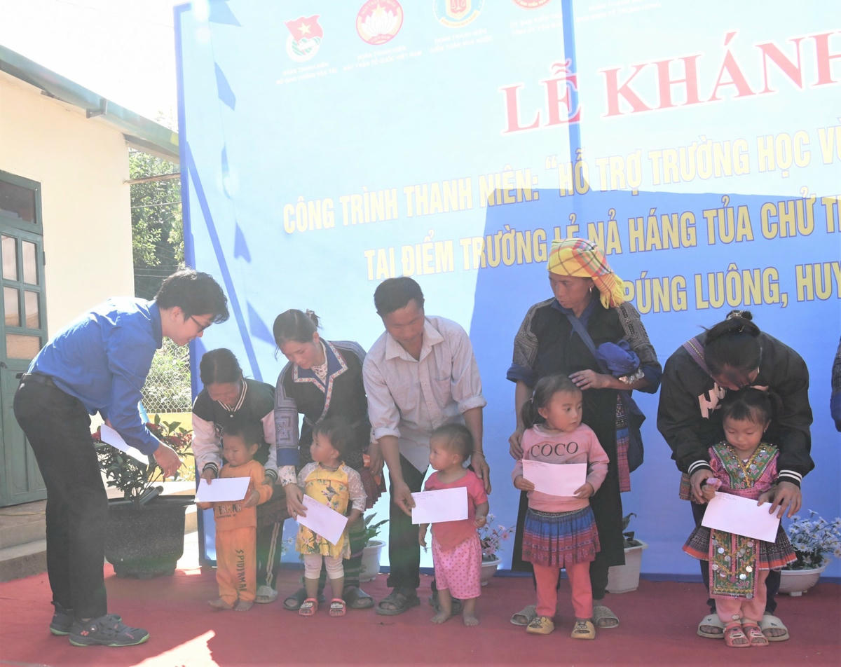 Đoàn Thanh niên KTNN đã hỗ trợ 150 triệu đồng thông qua kêu gọi các đoàn viên thanh niên trong và ngoài ngành quyên góp; phần còn lại có sự hỗ trợ từ: Đoàn Thanh niên Bộ Giao thông Vận tải hỗ trợ 50 triệu đồng, Ban Kinh tế Trung ương hỗ trợ 10 triệu đồng quà tặng và 2 cây lọc nước, Ủy ban kiểm tra tỉnh Yên Bái hỗ trợ 50 triệu đồng; UBND huyện Mù Cang Chải bố trí các nguồn lực khác hỗ trợ.