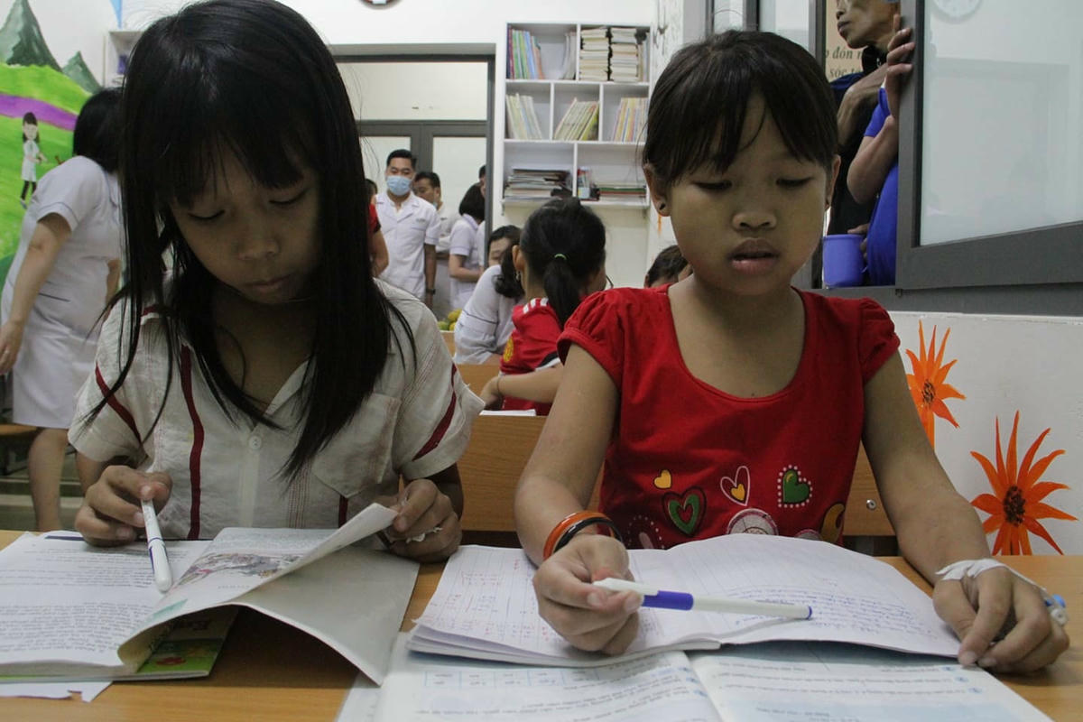 Học sinh của lớp chính là những em nhỏ đang điều trị bệnh tại Trung tâm. Với khoảng 20 học sinh, cứ mỗi ngày lớp học được tổ chức, thời gian thường từ 19h-21h, khi các bác sĩ “nhàn” việc.