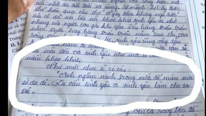 Trước đó, Hoa Học Trò thông tin, trên mạng xã hội chia sẻ chia sẻ bài viết của một bạn học sinh đã trích thêm 2 câu hát trong bài hit đình đám Hai Triệu Năm của rapper Đen Vâu khi làm bài thi môn Ngữ Văn cuối học kì I.