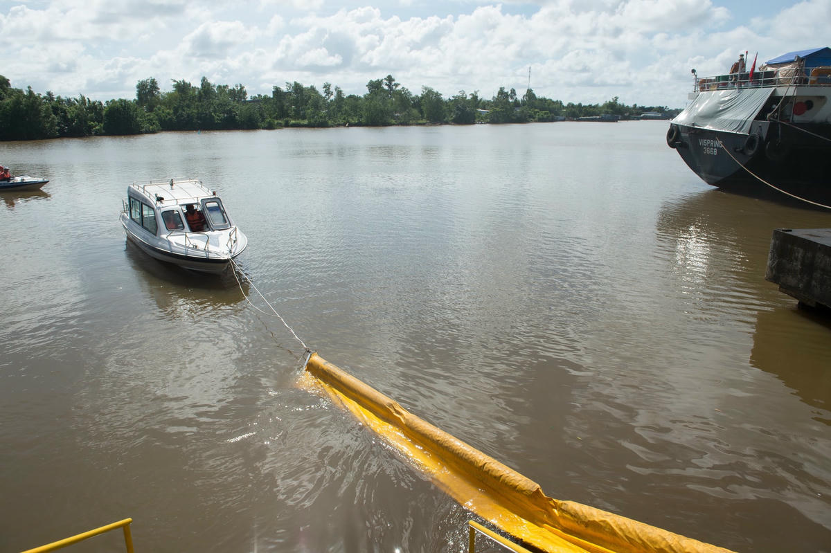 Để ứng phó với tình huống này, các đơn vị đã huy động tổng cộng 61 cán bộ, chiến sỹ tham gia cùng với 5 xe chữa cháy chuyên dụng, 1 cano chữa cháy, 1 xe cứu thương cùng nhân viên y tế và 2 cano cùng với các thiết bị ứng cứu, khắc phục, thu gom dầu tràn.