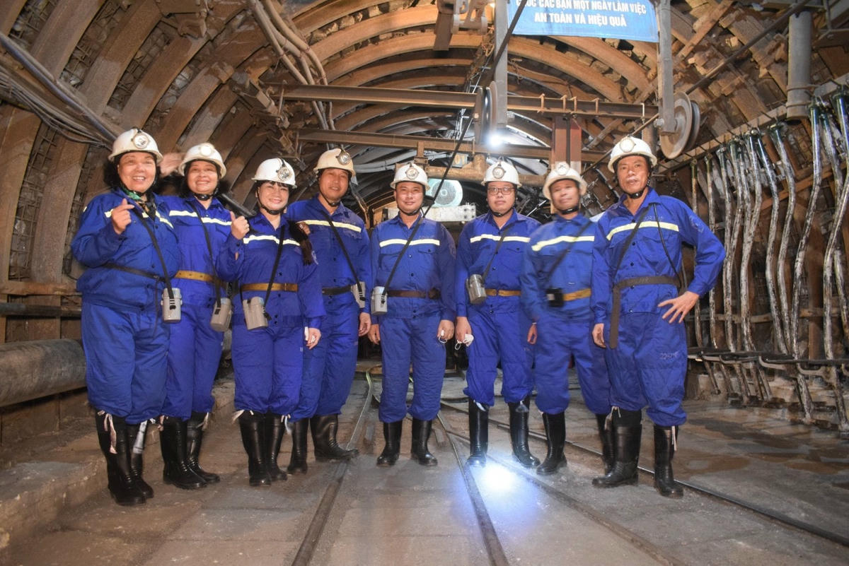 Chúng tôi thay quần áo bảo hộ, tất tần tật đồng bộ như một người thợ vào lò. Lòng đầy háo hức. Phó Giám đốc Vũ Quang Tuyến đã quán triệt từ đầu, các chị chỉ được xuống âm 90, hai anh nam được xuống tận gương than. Cả đoàn được đưa vào phòng y tế để đo huyết áp và nhịp tim. Cuối cùng chỉ có anh Hùng quân đội (Tạp chí Văn nghệ quân đội) đủ tiêu chuẩn xuống âm 175.