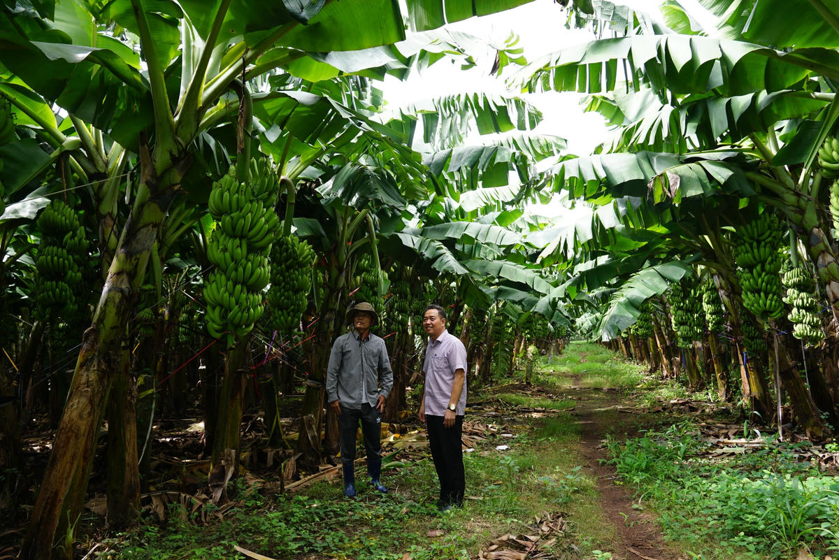 Theo ông Thống, khu đất đang trồng chuối của ông trước đây trồng mía. Cây mía vốn bấp bênh, thị trường thiếu ổn định nên điệp khúc “cứ trồng là thua” khiến nhiều nông dân không còn mặn mà. Qua một thời gian tìm hiểu, năm 2019, ông quyết định chuyển sang trồng chuối xuất khẩu. Giống chuối già Nam Mỹ được ông tuyển lựa từ một vườn ươm của huyện Trảng Bom (Đồng Nai) cho hiệu quả khá tốt.