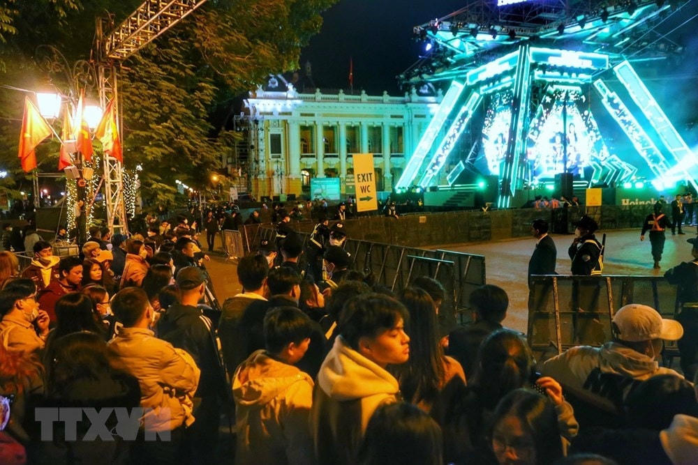 Hàng chục nghìn người dân Thủ đô đổ dồn về 2 địa điểm trước Nhà hát Lớn và phố đi bộ Hồ Gươm (Hà Nội) trong đêm giao thừa, cùng nhau đếm ngược chào đón năm mới 2023.