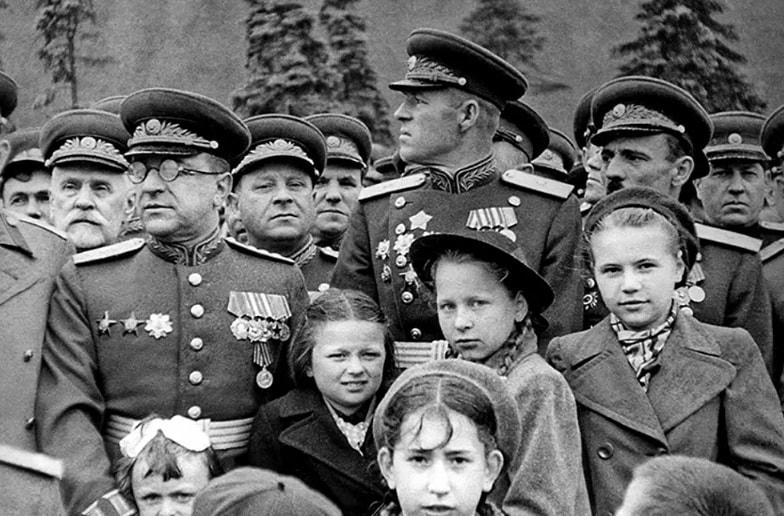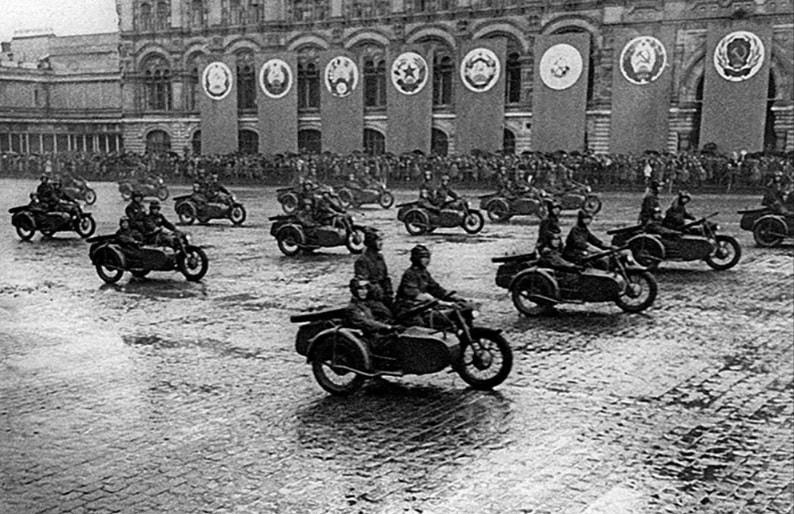 Cuộc diễu hành đầu tiên đánh dấu chiến thắng của Liên Xô trước Đức quốc xã được chỉ huy bởi Nguyên soái Liên Xô K.K. Rokossovsky và được tổ chức bởi Thống chế Liên Xô G.K. Zhukov. Lăng Lenin trong cuộc diễu hành chiến thắng đầu tiên. Tổng Bí thư Ban Chấp hành Trung ương Đảng Cộng sản Liên Xô/CPSU Joseph Stalin tham dự cuộc diễu hành Chiến thắng đầu tiên trên Quảng trường Đỏ. Xe tăng pháo tự hành ISU-152 băng qua Quảng trường Đỏ trong cuộc diễu hành Chiến thắng đầu tiên ở Moscow. Chỉ huy Trung đoàn kết hợp Mặt trận thứ 4 của Ukraine (giữa), Thiếu tướng Leonid Ilyich Brezhnev, bên trái là Chỉ huy của Quân đoàn súng trường 101 thuộc Quân đoàn 38, Trung tướng Andrei Leontyevich Bondarev. Những người lính diễu hành qua Quảng trường Đỏ. Nguyên soái Liên Xô, Đại tướng Georgy Zhukov (giữa) tại Cuộc diễu hành Chiến thắng đầu tiên. Những người lính cưỡi mô tô qua Quảng trường Đỏ. Xe tăng IS-2 trong cuộc diễu hành Chiến thắng đầu tiên trên Quảng trường Đỏ.13 Lính xe tăng Liên Xô trong cuộc diễu hành Chiến thắng đầu tiên trên Quảng trường Đỏ.Bệ phóng tên lửa Katyusha trong cuộc diễu hành Chiến thắng đầu tiên ở Moscow.Khách nước ngoài có mặt trên Quảng trường Đỏ trong cuộc diễu hành Chiến thắng đầu tiên. Đội hình diễu hành của quân nhân Liên Xô. Hải quân Liên Xô.Kỵ binh Liên Xô. 20 Những người lính Liên Xô ném các biểu ngữ của Đức Quốc xã vào căn cứ của Lăng Lenin trong cuộc diễu hành Chiến thắng đầu tiên trên Quảng trường Đỏ. Quân nhân Liên Xô và gia đình có mặt trên Quảng trường Đỏ, năm 1945.