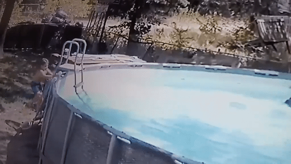 Hình ảnh trong đoạn video cho thấy, sau khi phát hiện mẹ có hiện tượng co giật, cậu bé đã leo lên cầu thang rồi vào trong bể bơi, ôm cổ mẹ cố gắng kéo ra bên ngoài.